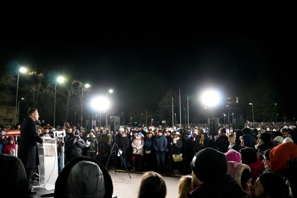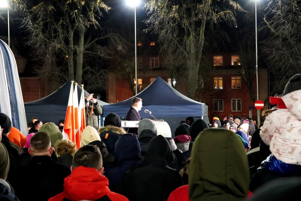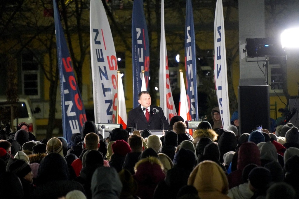 W piątkowy wieczór, 7 lutego, Plac Piłsudskiego w Giżycku stał się miejscem spotkania sympatyków Konfederacji, a to za sprawą wiecu wyborczego kandydata na Prezydenta RP, Sławomira Mentzena. Wydarzenie cieszyło się dużym zainteresowaniem, a wśród uczestników można było zauważyć osoby w różnym wieku – od młodzieży po seniorów.