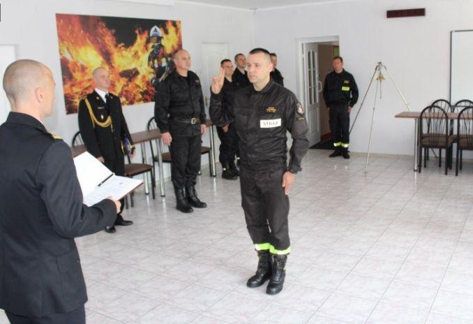 27.05.2020 r. Komendant Powiatowy PSP w Giżycku bryg. Jacek Baczewski przyjął ślubowanie strażaka Marka Czarnieckiego.