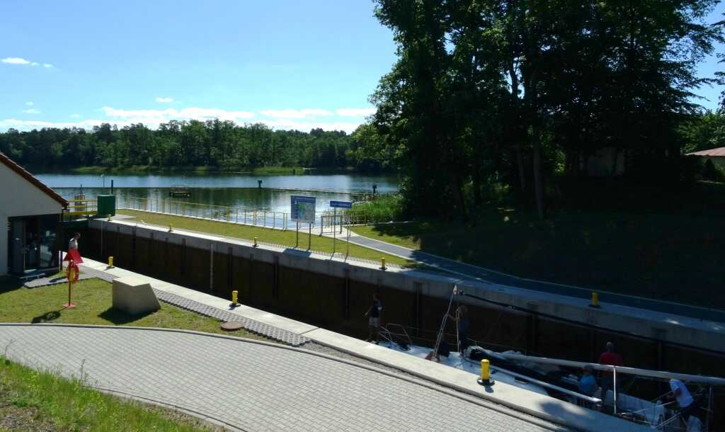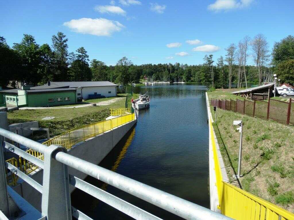 Śluza może pomieścić w dwóch rzędach 10 jachtów dużych i średnich lub 12 średnich i małych. Zapewnia możliwość komunikacji pomiędzy jeziorami, których poziom zwierciadła wody różni się o ok. 2 m.