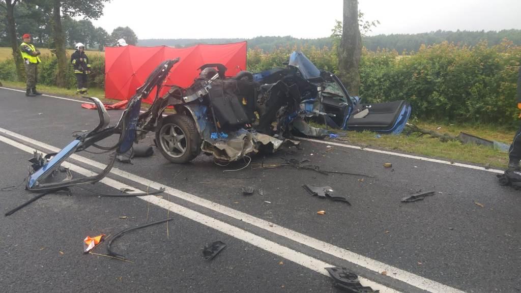 Siła uderzenia była tak duża, ze kierujący pojazdem podczas uderzenia wypadł z samochodu, w wyniku doznanych obrażeń poniósł śmierć na miejscu. Pasażer auta został zabrany do szpitala, jego życiu nie zagraża niebezpieczeństwo.