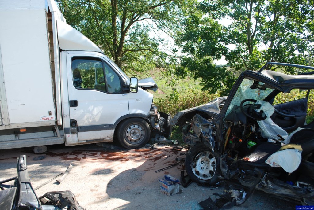 Na miejscu funkcjonariusze potwierdzili, że kierujący pojazdem dostawczym 50-letni mężczyzna (mieszkaniec Łęgajn), jadąc drogą wojewódzką z Ełku w kierunku Giżycka, na łuku drogi „ściął” zakręt i zderzył się czołowo z pojazdem osobowym. Pojazd pokrzywdzonego kierowany był przez 69-letniego mężczyznę, mieszkańca miejscowości Skomack Wielki. Mimo udzielonej mu pomocy medycznej zmarł na miejscu zdarzenia. Autem podróżowała także 50-letnia pasażerka, która w stanie ciężkim została przetransportowana do szpitala w Ełku.