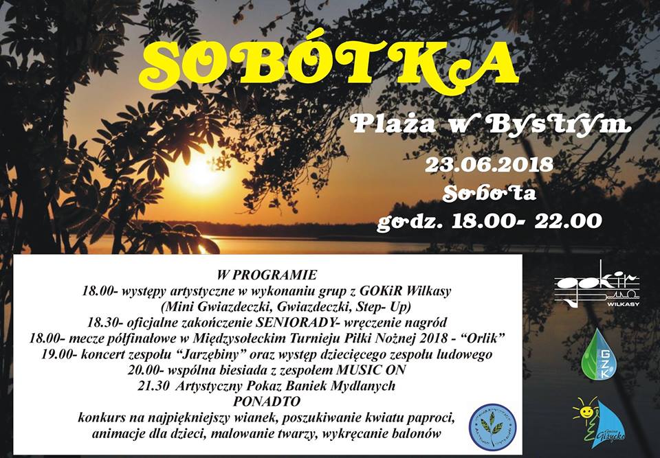 Sobótka, zwana również Nocą Kupały odbędzie się 23 czerwca na plaży gminnej w Bystrym.