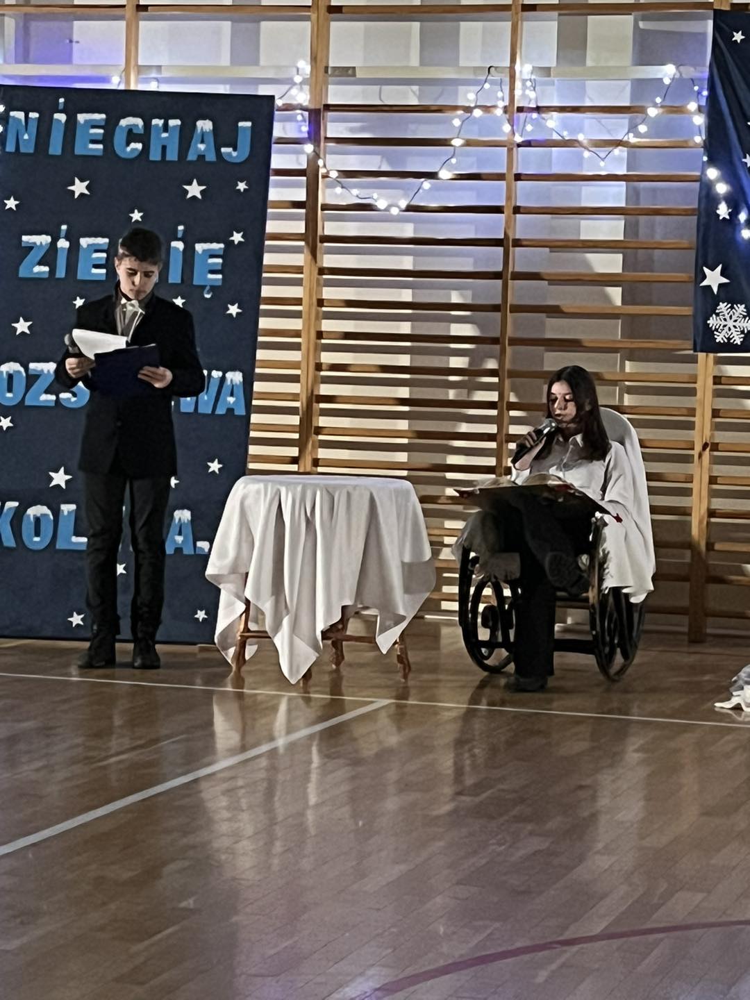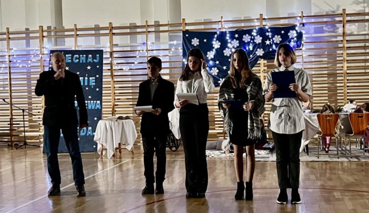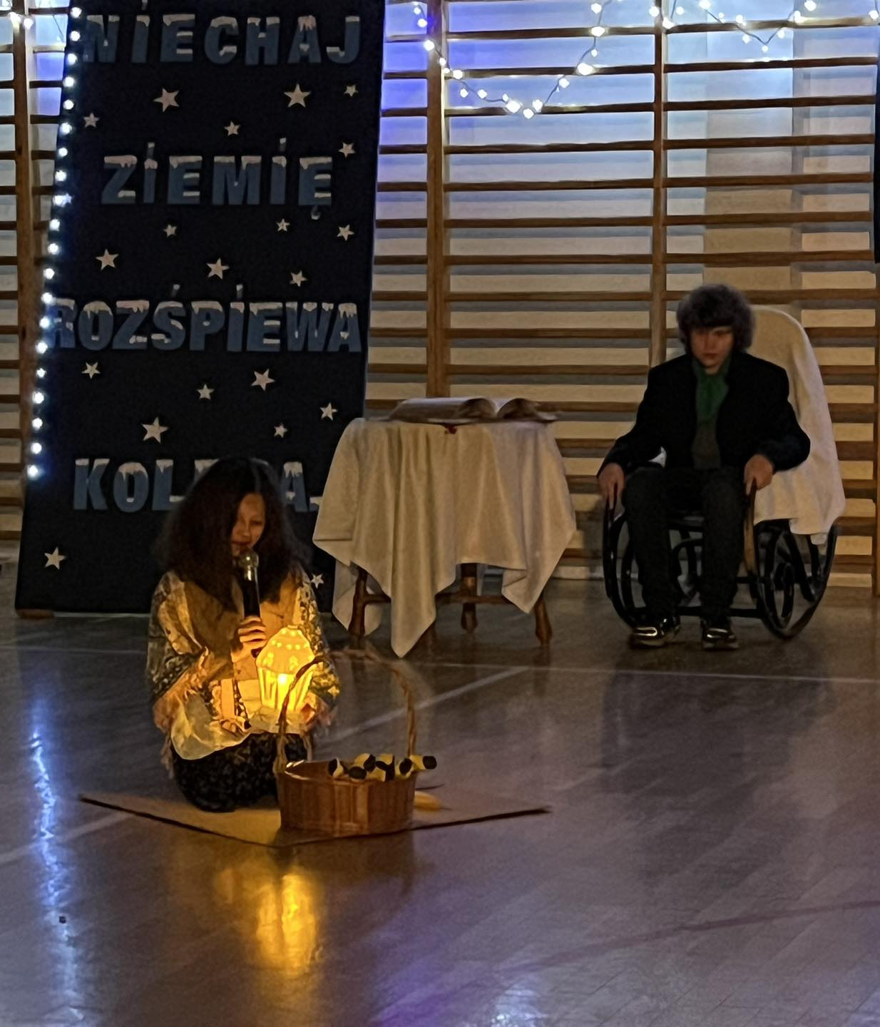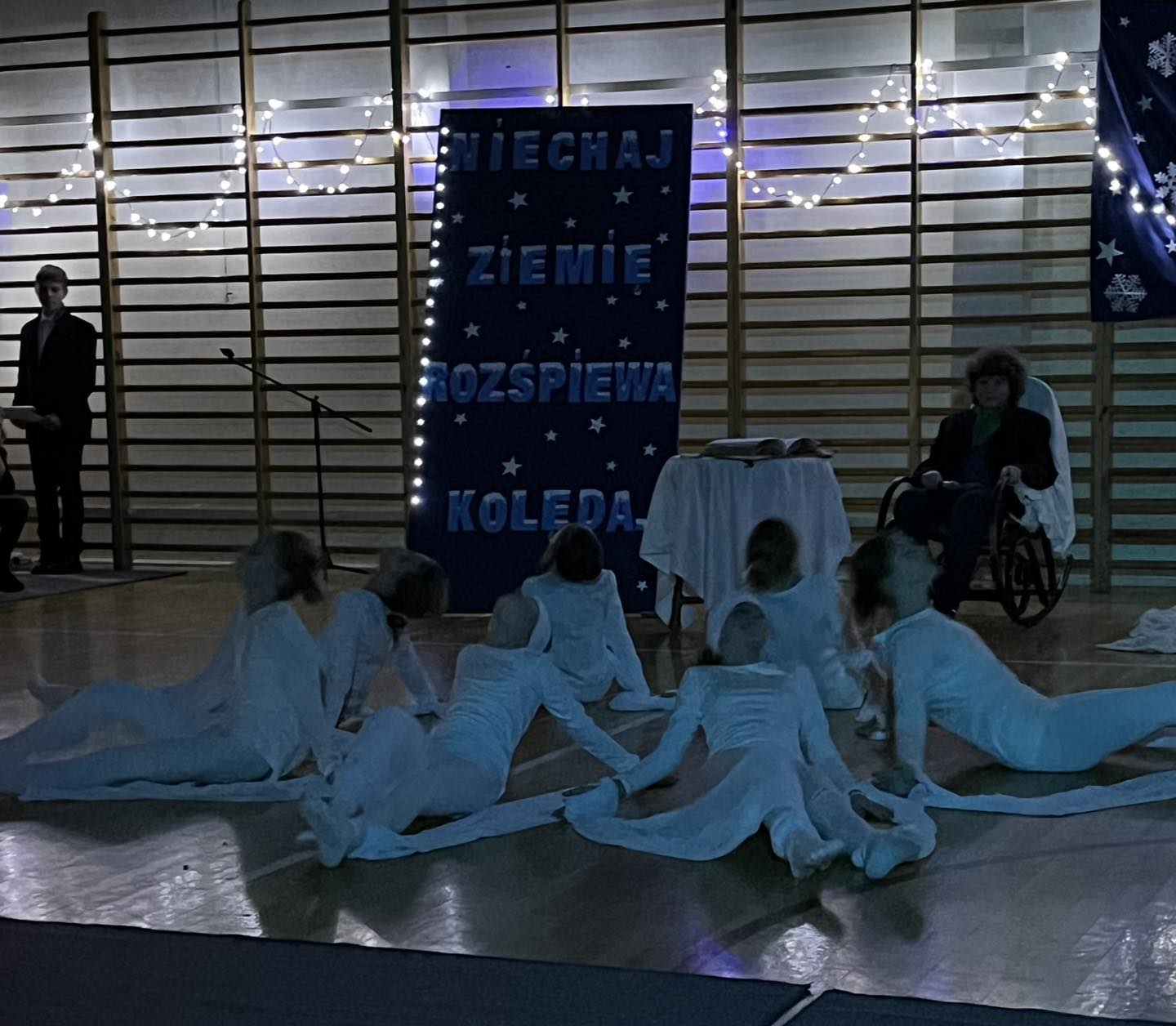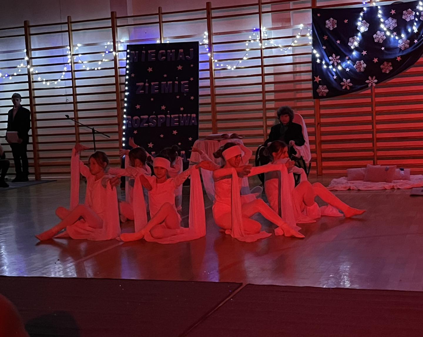 Młodzi aktorzy śpiewali kolędy w różnych językach, recytowali wiersze polskich poetów, zaprezentowali się w przepięknym tańcu aniołów oraz wcielili się w bohaterów jednej z najbardziej poruszających baśni Hansa Christiana Andersena – Dziewczynka z zapałkami, która zapewne poruszyła i oczarowała każdego widza.