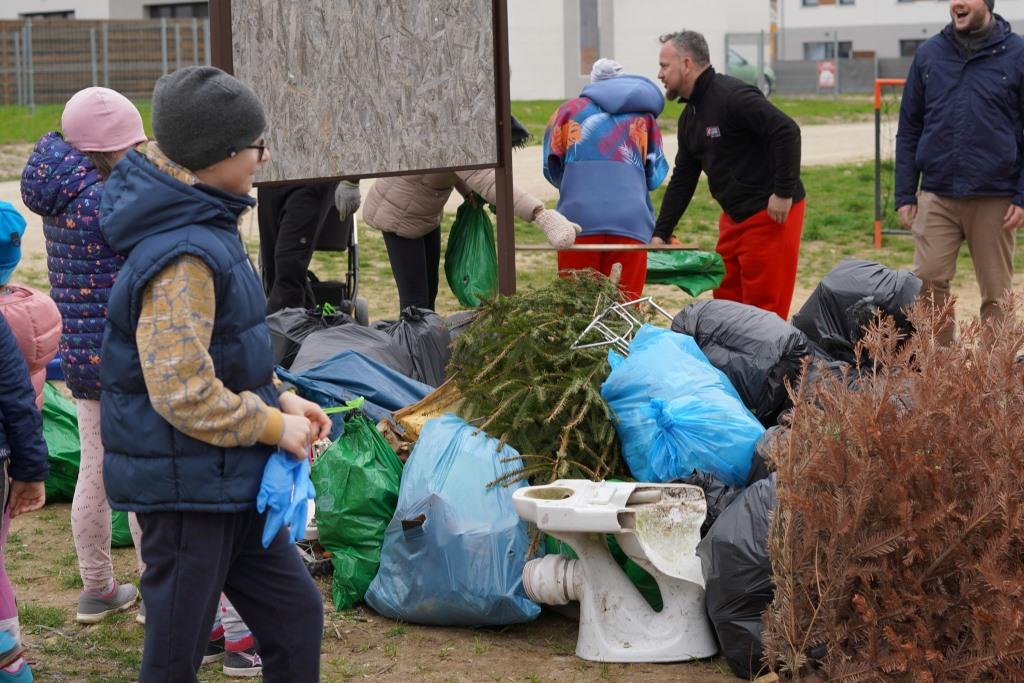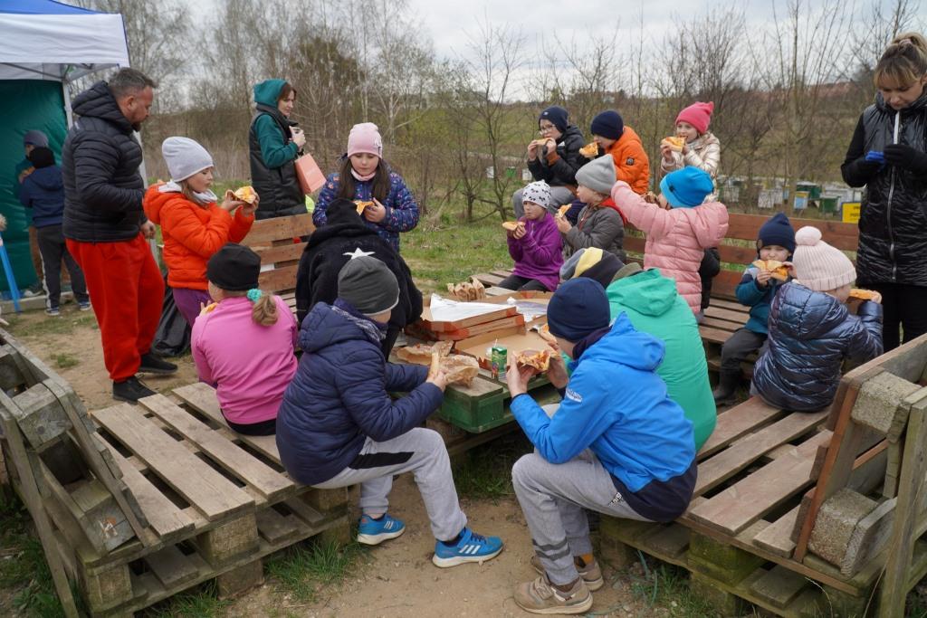 Dzięki ich zaangażowaniu udało się zebrać całkiem pokaźną górę śmieci, porozmawiać o segregacji i świetnie spędzić czas! Podczas spotkania sąsiedzkiego nie zabrakło dobrej sportowej zabawy z Giżyckim Klubem Sportowym Spartakus oraz uzupełnienia kalorii po wyczerpującym 1,5-godzinnym treningu.
