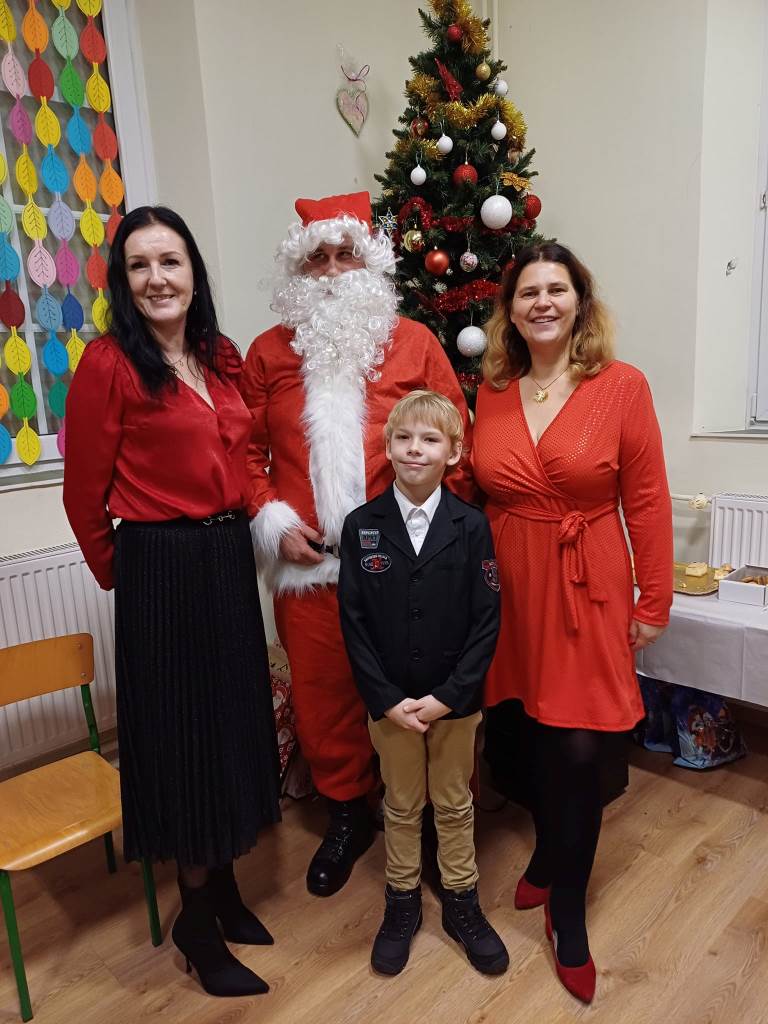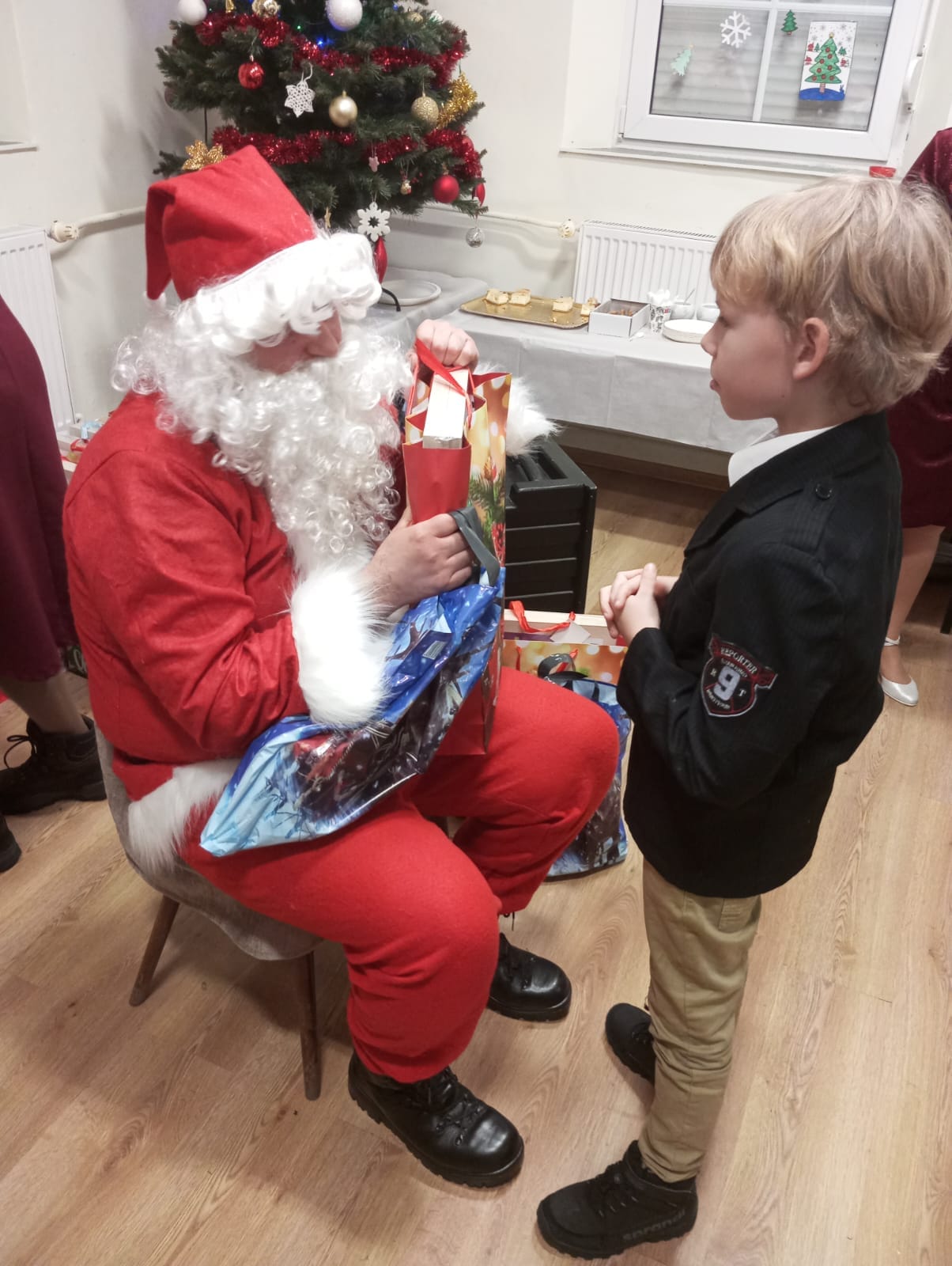 Na zakończenie na dzieci i młodzież czekała miła niespodzianka. Na sali pojawił się Mikołaj z prezentami. Dzieci czekały na upominki z niecierpliwością i nie kryły radości z paczek wypełnionych niespodziankami.