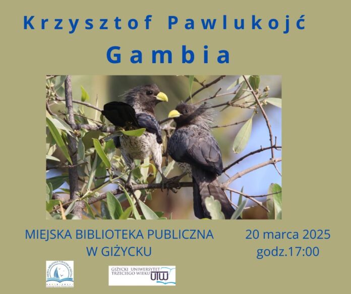Miejska Biblioteka Publiczna w Giżycku oraz Giżycki Uniwersytet Trzeciego Wieku zapraszają miłośników opowieści Krzysztofa Pawlukojcia na spotkanie poświęcone podróży po Gambii.