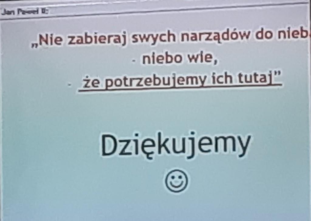 Prowadząca spotkanie p. Mirosława Borowa – nauczyciel Szkoły Policealnej zwróciła się do zgromadzonych o przemyślenie swojej decyzji w sprawie dawstwa organów, a w przypadku negatywnego podejścia do tej kwestii – złożenie stosownego oświadczenia w Centralnym Rejestrze Sprzeciwów.