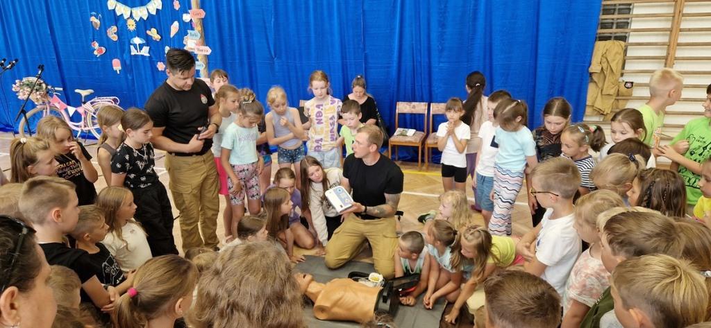 Prelegenci omówili ważne zasady z zakresu bezpieczeństwa w ruchu drogowym, odpoczynku nad wodą, a także jak zadbać o zdrowy i aktywny styl życia. Na koniec prelekcji, strażacy pokazali najmłodszym, jaki sprzęt jest używany podczas akcji ratunkowych. Teraz uczniowie wiedzą jak stosować defibrylator AED, gdzie przyklejać elektrody. Trzeba się tylko odważyć. Mała skrzynka może nam pomóc uratować komuś życie.