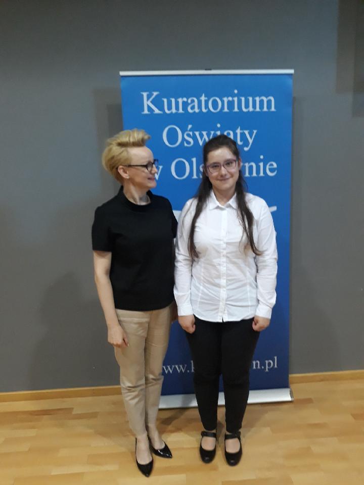 Na wielkie słowa uznania zasługuje uczennica Szkoły Podstawowej nr 7 Julia Krużyńska. Julka jest laureatką konkursów przedmiotowych z języka polskiego i języka angielskiego organizowanych przez Warmińsko – Mazurskiego Kuratora Oświaty. Jej sukces nie byłby możliwy bez systematycznej pracy i chęci pogłębiania wiedzy. Już od dzieciństwa pasją Julii jest czytanie książek. „Mistrz i Małgorzata” M. Bułhakowa to jej ulubiona lektura. Swoją przyszłość wiąże także z literaturą, ponieważ chciałaby zostać redaktorem literackim. Za swoje osiągnięcia 5 czerwca 2018 r. Julia odebrała nagrodę z rąk Warmińsko – Mazurskiego Kuratora Oświaty, pana Krzysztofa Marka Nowackiego.