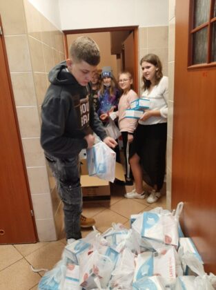 W pomoc przy świątecznej akcji zaangażowani byli także uczniowie i dyrekcja Zespołu Szkół Ogólnokształcących w Wydminach.