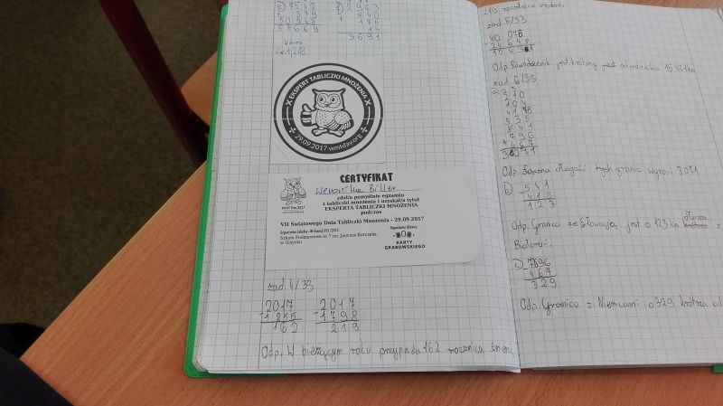 W klasach IV-VII udział wzięło łącznie 427 uczniów, ekspertami zostało 224 uczniów. Wszyscy, którzy zdali bezbłędnie egzamin otrzymali imienny certyfikat i naklejkę „Eksperta tabliczki mnożenia”.