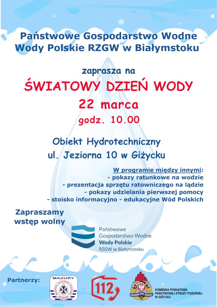 Państwowe Gospodarstwo Wodne Wody Polskie serdecznie zaprasza 22.03.2019r. o godz. 10.00 na Obiekt Hydrotechniczny w Giżycku przy ul. Jeziornej 10, na obchody Światowego Dnia Wody.