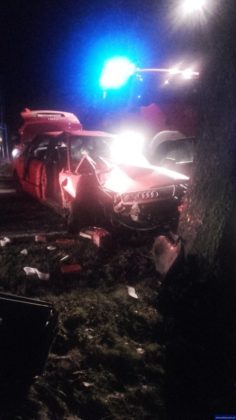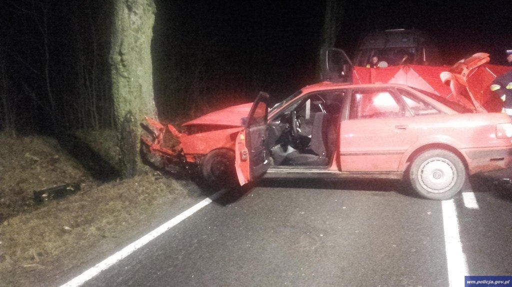 Do drugiego tragicznego w skutkach wypadku z udzialem nietrzeźwego kierowcy doszło w pierwszy dzień świąt w powiecie mrągowskim. W niedzielę tuż przed godz. 21:00 oficer dyżurny policji w Mrągowie został zaalarmowany o wypadku, do którego doszło na trasie Mrągowo – Piecki. Na miejsce został skierowany patrol policji, straż pożarna i karetka pogotowia. Na miejscu funkcjonariusze ustalili, że kierujący osobowym audi 22-letni mężczyzna, podjął manewr wyprzedzania jadącej przed nim hondy. W jego trakcie uderzył w tył wyprzedzanego auta. Uderzone auto obróciło się i wjechało do przydrożnego rowu. Natomiast audi zjechało na przeciwległy pas ruchu i wjechało w przydrożne drzewo. W audi podróżowało trzech mężczyzn. Jeden z pasażerów, 58-letni mieszkaniec gminy Piecki – mimo przeprowadzonej na miejscu reanimacji – zmarł. Badanie alkomatem wykazało, że 22-latek, który kierował samochodem miał 3 promile alkoholu w organizmie i jak ustalili policjanci nigdy nie miał wydanego prawa jazdy. Pasażer, który przeżył miał 1,6 promila alkoholu w organizmie. Zarówno kierujący audi, jak i jego 49-letni pasażer trafili do policyjnej celi. Uderzoną hondą podróżował małżeństwo wraz z dwójką dzieci. Na szczęście nikt z tych osób nie odniósł poważnych obrażeń.