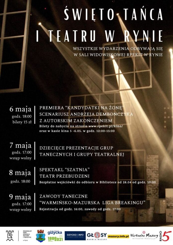 Regionalny Park Edukacji, Kultury i Turystyki w Rynie zaprasza na pierwszą edycję Święta Tańca i Teatru. Będą to 4 dni przepełnione emocjami, muzyką, tańcem, ruchem scenicznym i sztuką.