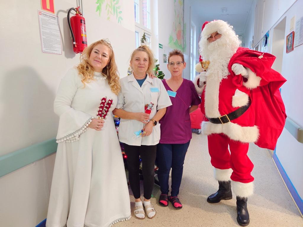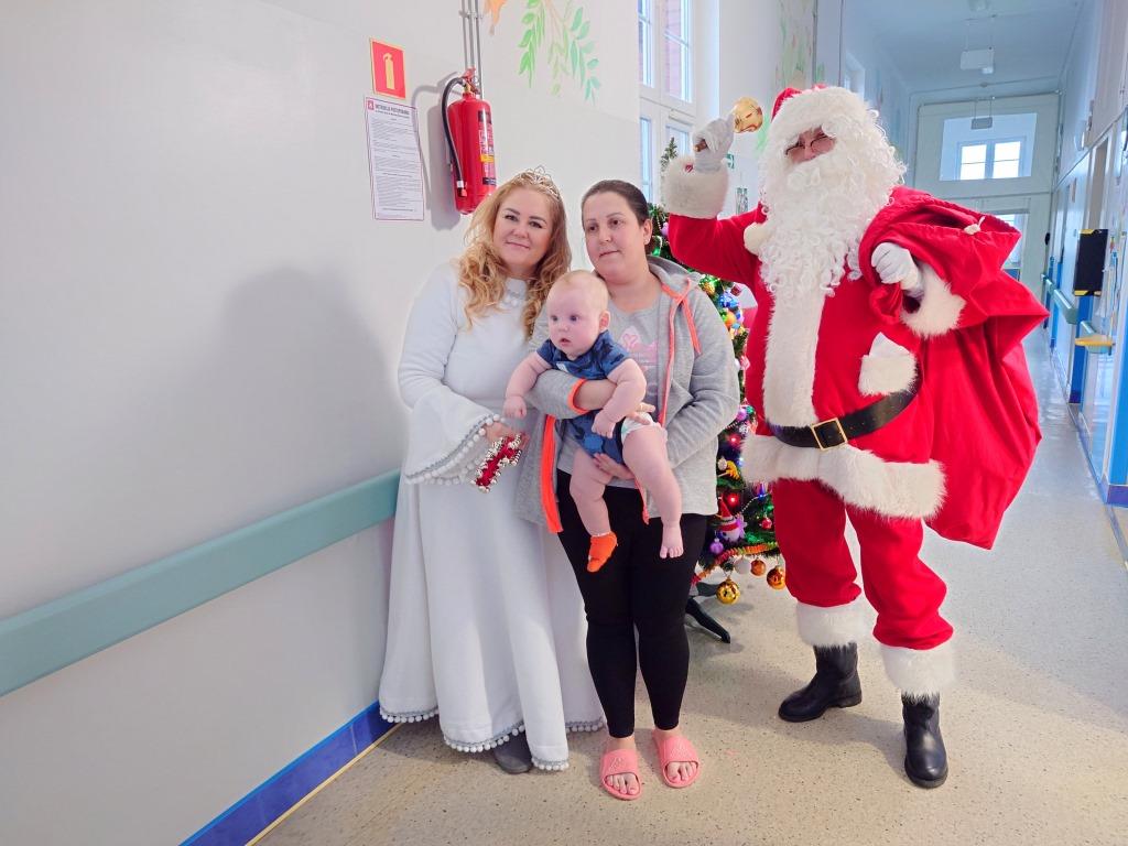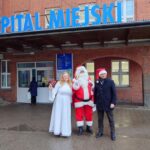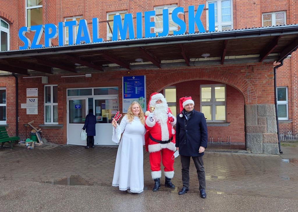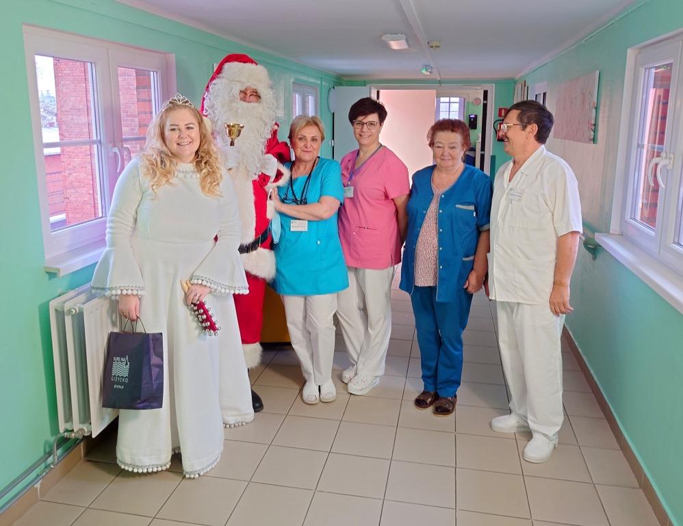 Białobrody darczyńca nie zapomniał o najmłodszych pacjentach, którzy przebywają w Szpitalu Miejskim w Giżycku. Wraz ze Śnieżynką i burmistrzem Wojciechem Karolem Iwaszkiewiczem odwiedził dzieci na oddziale pediatrycznym giżyckiej lecznicy i wręczył im prezenty.
