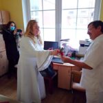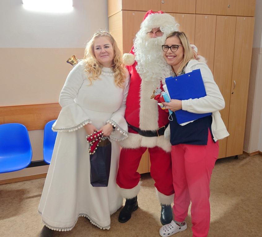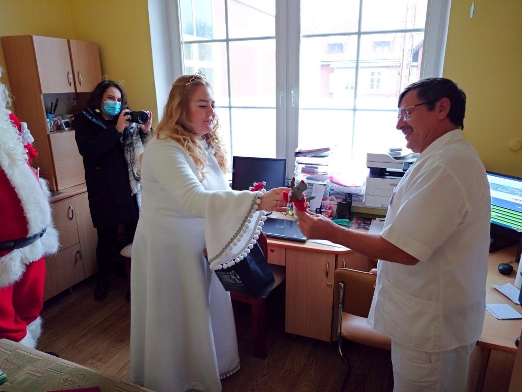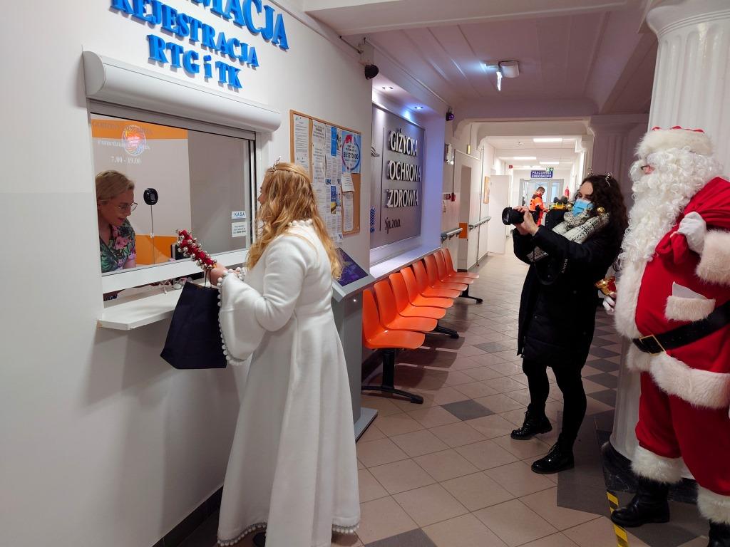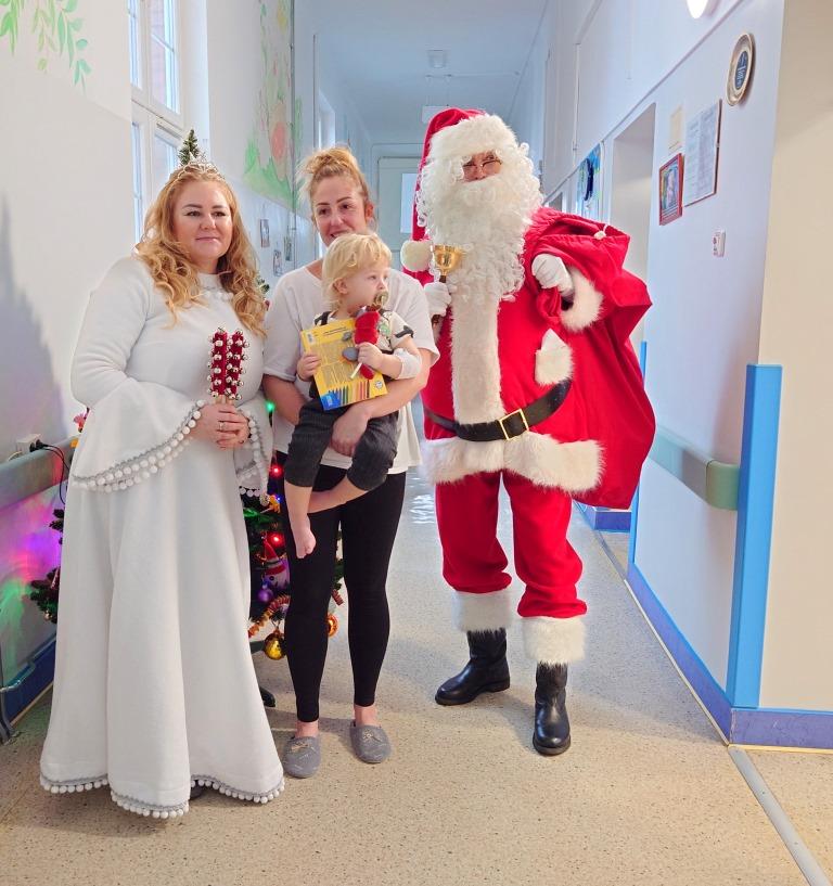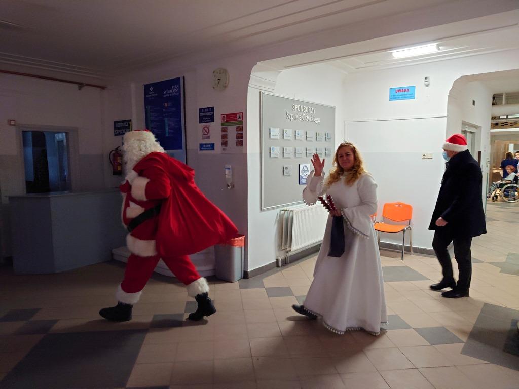 Białobrody darczyńca nie zapomniał o najmłodszych pacjentach, którzy przebywają w Szpitalu Miejskim w Giżycku. Wraz ze Śnieżynką i burmistrzem Wojciechem Karolem Iwaszkiewiczem odwiedził dzieci na oddziale pediatrycznym giżyckiej lecznicy i wręczył im prezenty.