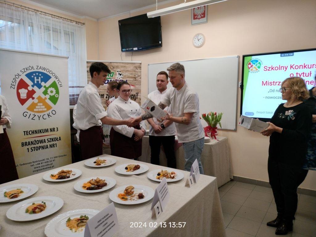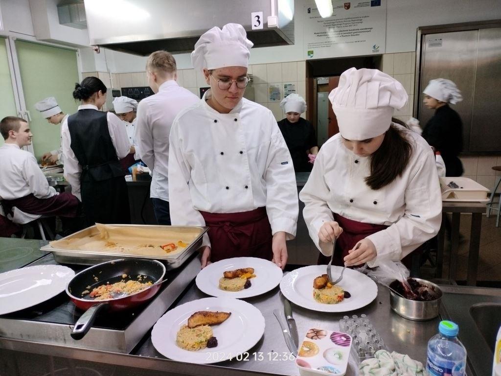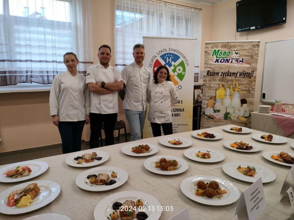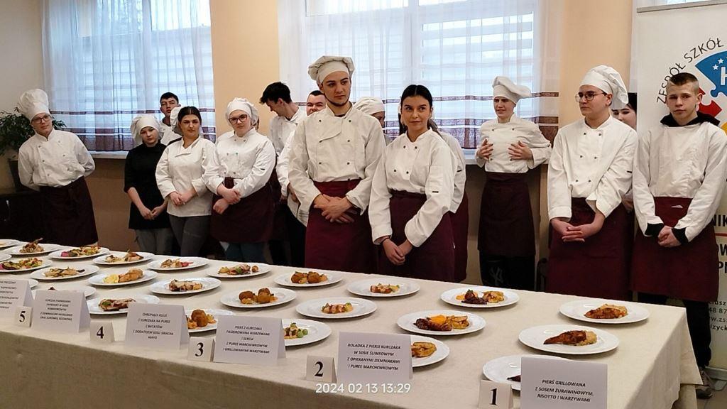 13 lutego 2024 roku w Zespole Szkół Zawodowych w Giżycku po raz kolejny uczniowie klas o profilu gastronomicznym przystąpili do potyczek kulinarnych. W konkursie udział wzięło 10 zespołów z różnych klas.