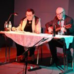 Zbliżający się Międzynarodowy Dzień Teatru był okazją do spotkania się z aktorami Teatru przy Stoliku z Olsztyna. Wiesława Szymańska i Marian Czarkowski przedstawili oryginalne teksty wybitnych poetów i satyryków, twórców kabaretu literackiego, m.in. Mariana Hemara, Juliana Tuwima, Adama Asnyka, Jeremiego Przybory i Jonasza Kofty. Ze swadą i humorem czytali je, pan Marian zaś wplatał znane utwory sprzed lat śpiewane z towarzyszeniem gitary.