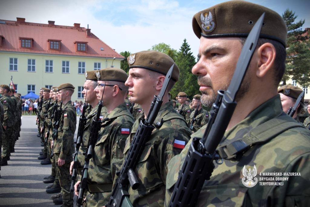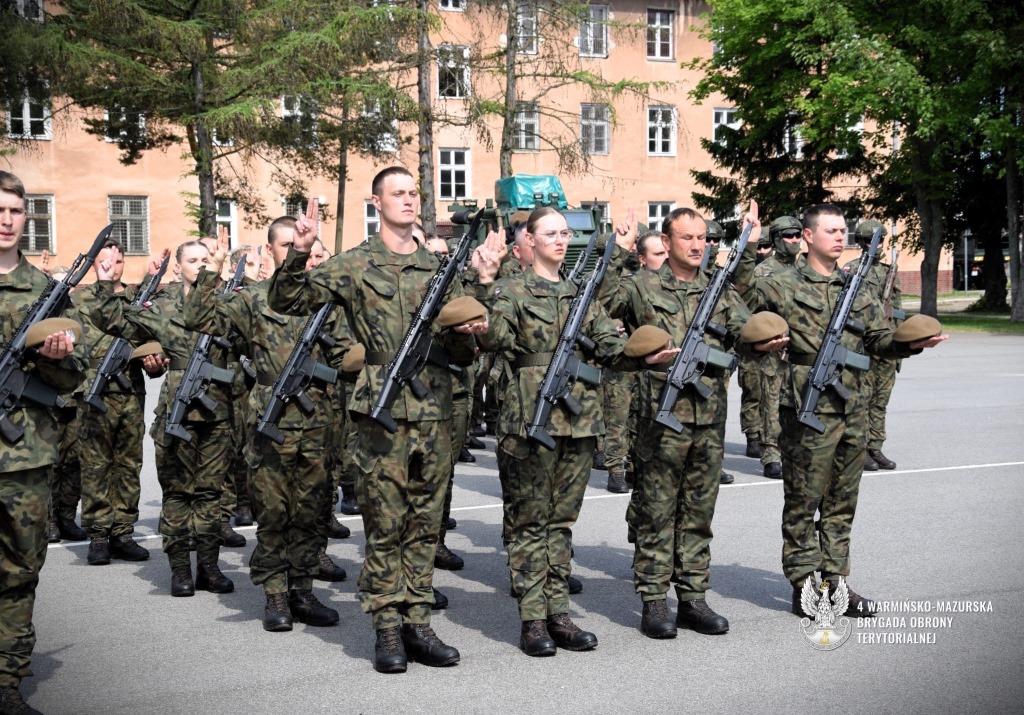 W sobotę 25 maja na terenie jednostki wojskowej w Braniewie blisko 80 ochotników (w tym 30 kobiet) złożyło przysięgę wojskową na sztandar 4 Warmińsko-Mazurskiej Brygady Obrony Terytorialnej. Uroczystość była zwieńczeniem 16-dniowego szkolenia podstawowego. Ochotnicy zasilą bataliony obrony pogranicza w Giżycku i Braniewie, a także bataliony lekkiej piechoty w Morągu, Ełku i w Olsztynie.