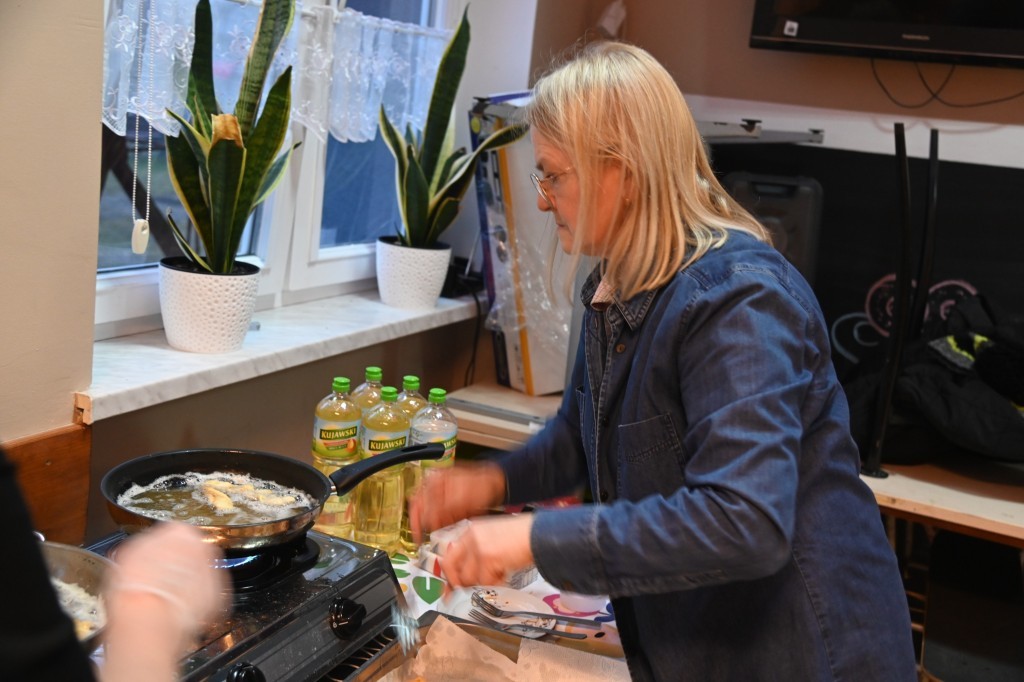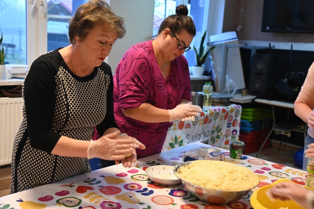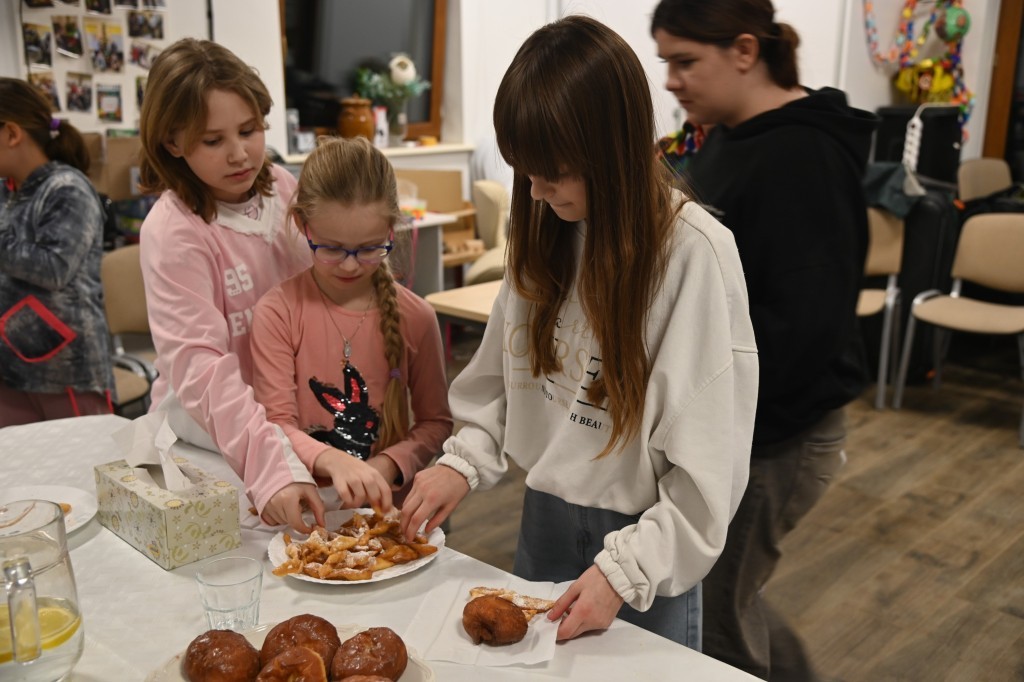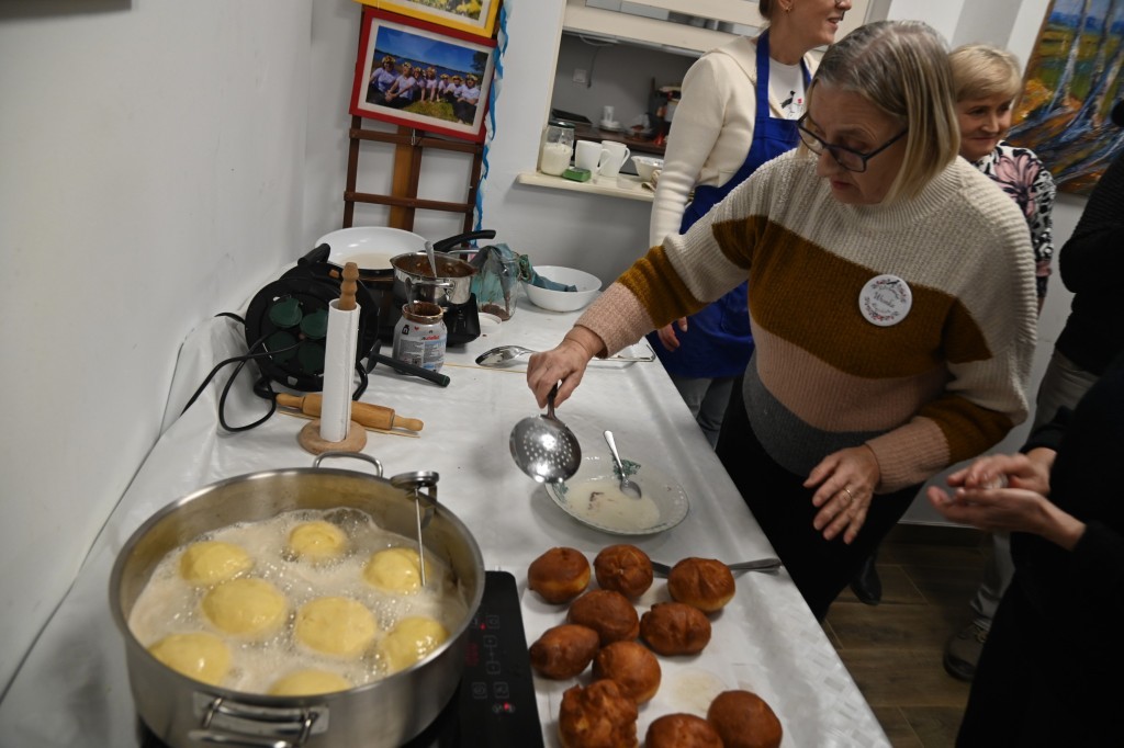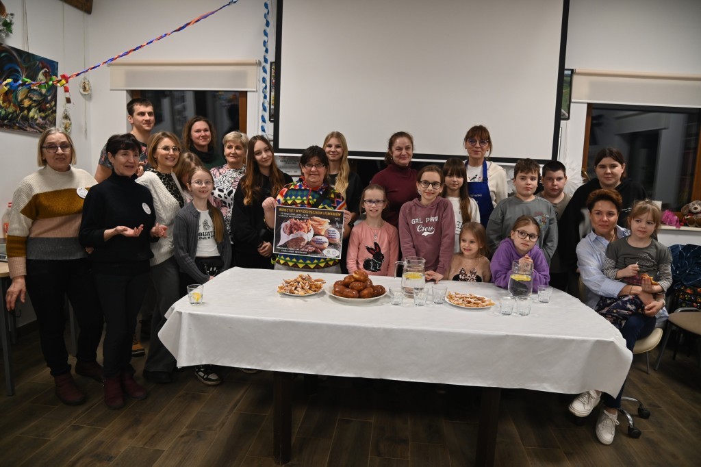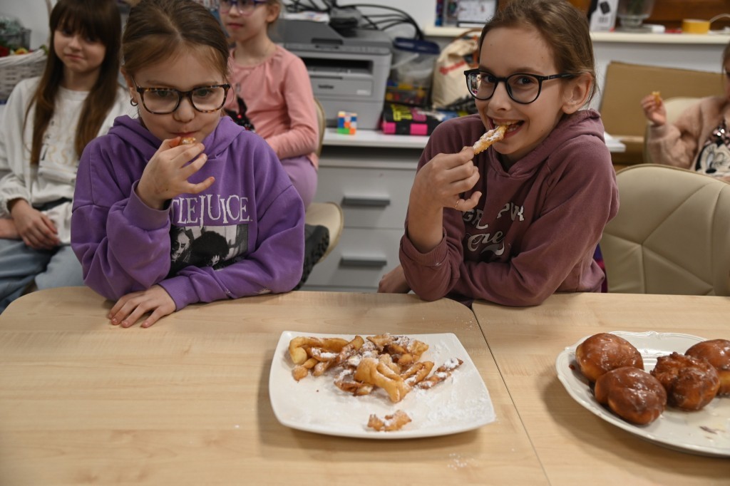 W pierwszej ze świetlic zjawili się dorośli, którym miejscowe koło z uwagi na czas potrzebny na wyrastanie ciasta na pączki już wcześniej przygotowało je i to w dwóch wersjach: na bazie mąki i ziemniaków. Warsztaty objęły również przyrządzenie i wyrób faworków, zwanych także chrustami.