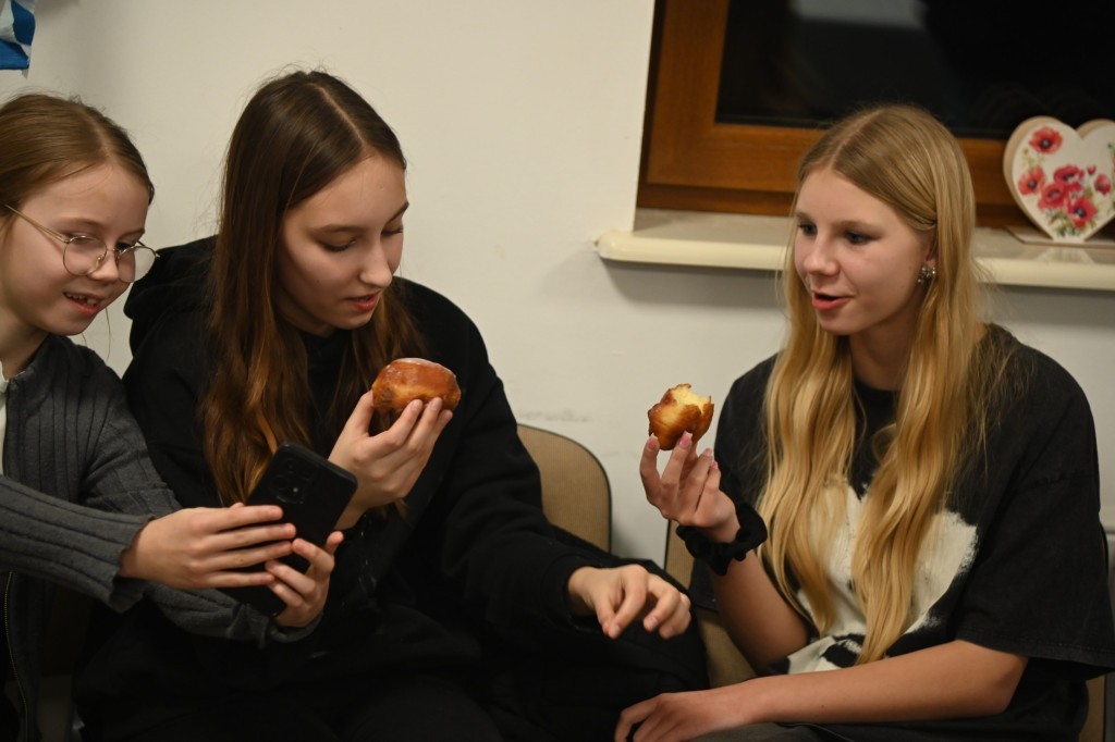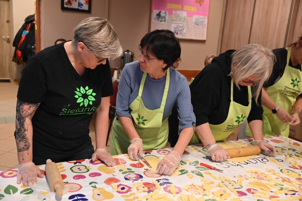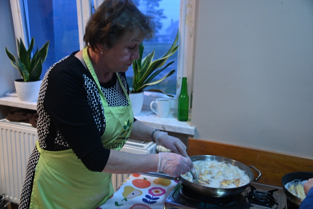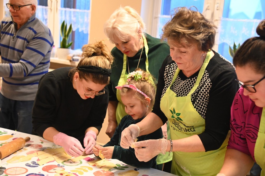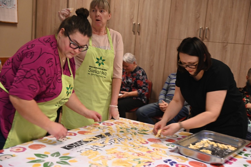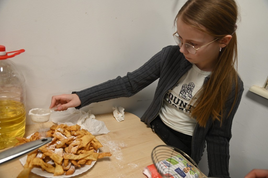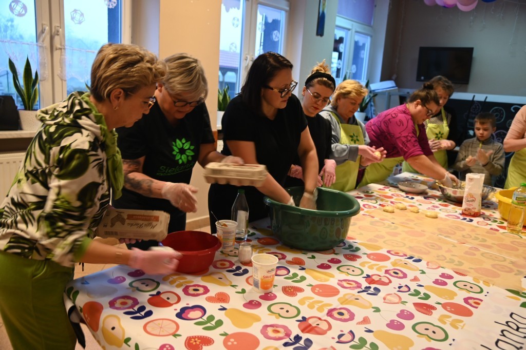 W pierwszej ze świetlic zjawili się dorośli, którym miejscowe koło z uwagi na czas potrzebny na wyrastanie ciasta na pączki już wcześniej przygotowało je i to w dwóch wersjach: na bazie mąki i ziemniaków. Warsztaty objęły również przyrządzenie i wyrób faworków, zwanych także chrustami.