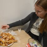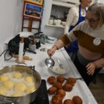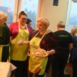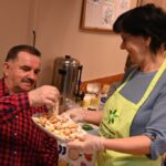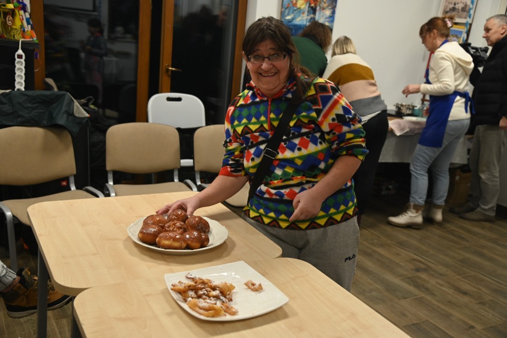 Stanowiska przy stołach szybko zajęli chętni, którzy w okamgnieniu przygotowywali pączkowe kulki gotowe do smażenia, inni z kolei cięli wyrobione ciasto pod wypiek faworków. Kilka pań stanęło z kolei przy patelniach, z których co chwila wyciągały wykładając na talerze zarumienione już pączki i chrusty. Posypane pudrem smakowały wybornie, to było prawdziwe „niebo w gębie”.
