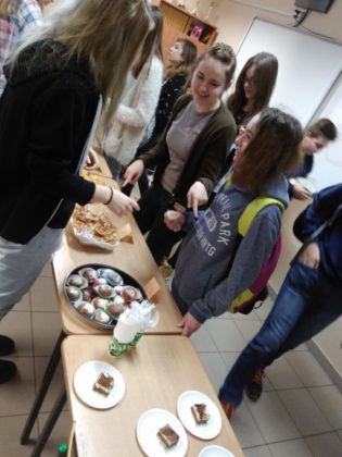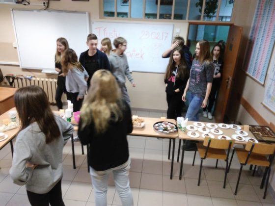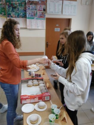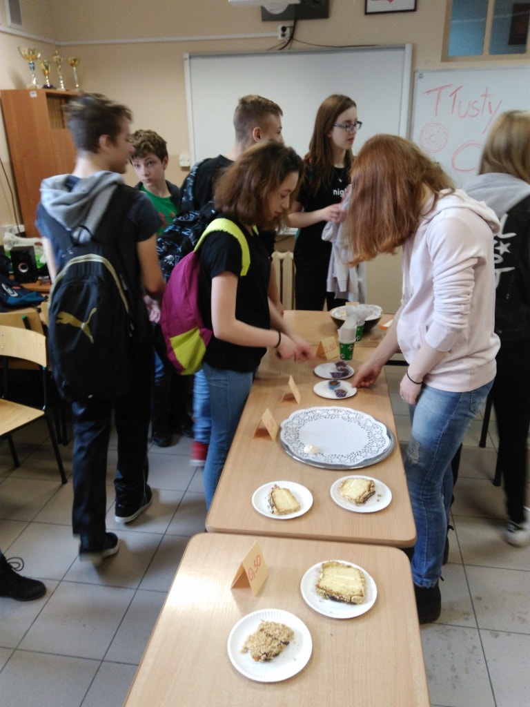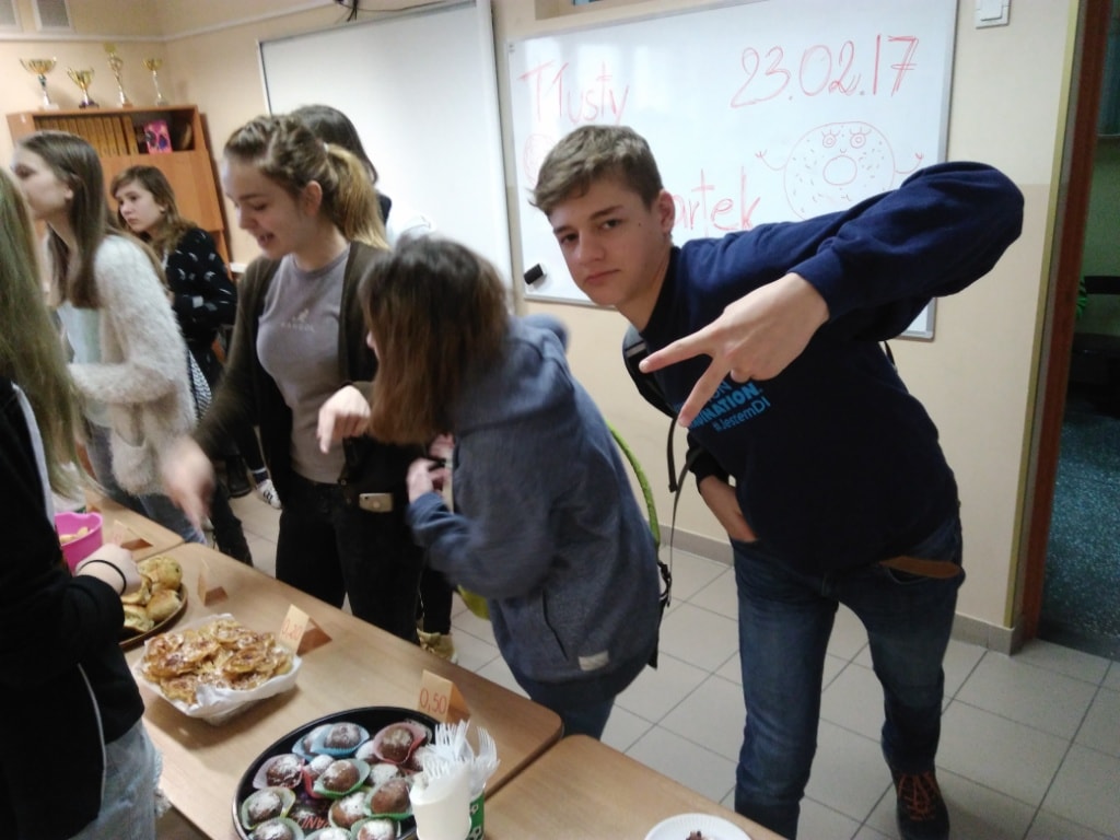 Samorząd Uczniowski Gimnazjum w Wilkasach z okazji tłustego czwartku zorganizował dla uczniów oraz pracowników szkoły kiermasz słodkości. Zainteresowanie było duże, w sprzedaży były tradycyjne pączki z różnymi nadzieniami, słodkie ciasta, rogaliki, galaretki, a nawet koktajle truskawkowo- bananowe. Nie trzeba było długo czekać, aby sprzedać wszystkie te pyszności. Samorząd dzięki zarobionym pieniądzom zrealizuje organizację innych imprez w szkole.