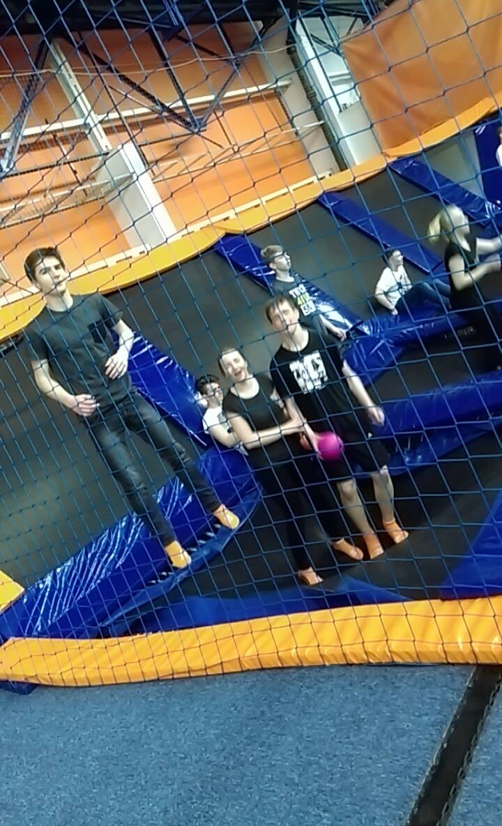 Hala pełna trampolin już na początku zrobiła na nas duże wrażenie, a po krótkiej rozgrzewce wszyscy mogli skakać robić salta, fikołki wsady –cokolwiek dusza zapragnie.
