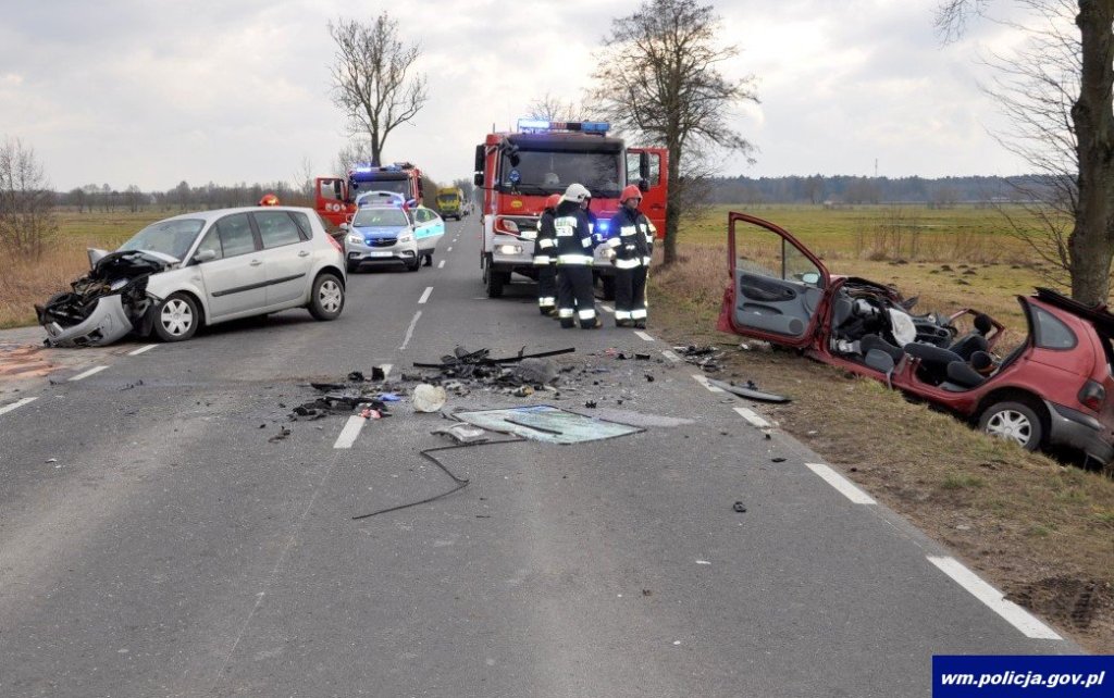 Policjanci pracowali na miejscu wypadku drogowego, do którego doszło na trasie Biała Piska- Drygały, gdzie zderzyły się dwa pojazdy. Ze wstępnych ustaleń wynika, że kierujący pojazdem marki Renault Scenic, z niewyjaśnionych na chwilę obecną przyczyn zjechał na przeciwległy pas ruchu i uderzył w nadjeżdżający z przeciwka samochód marki Renault Megane, którym kierowała kobieta. Jechała z 3-letnim synkiem.