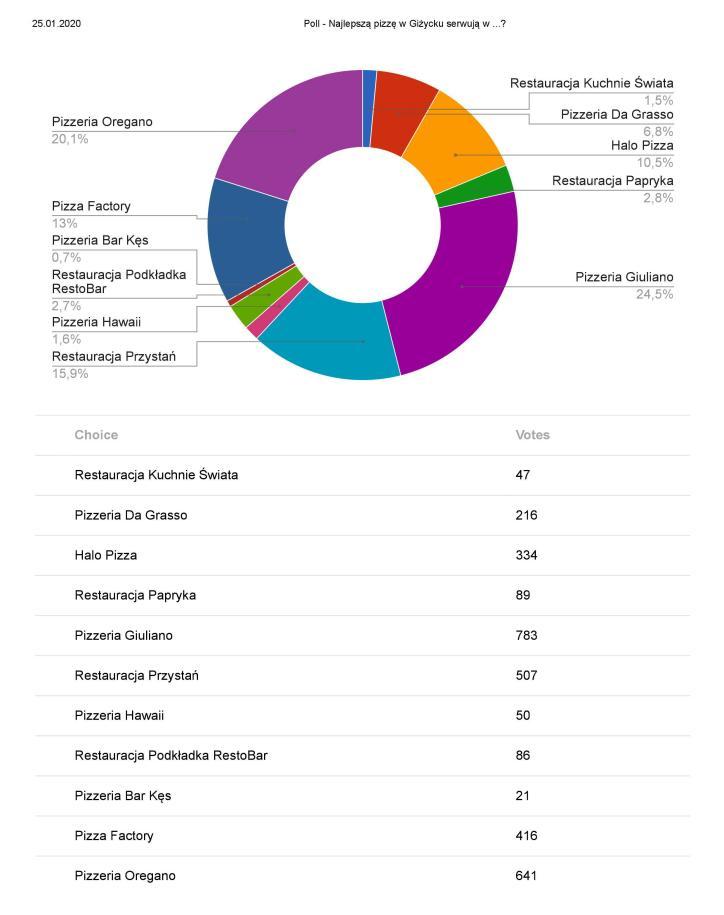 – Jesteśmy miło zaskoczeni, między innymi z tego względu, że nasza pizzeria funkcjonuje dopiero od roku. Dziękujemy bardzo za każdy oddany głos. Jest to dla nas bardzo duże wyróżnienie – komentuje wyniki głosowania właściciel Pizzerii Giuliano.