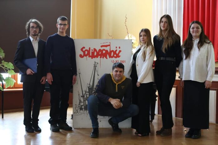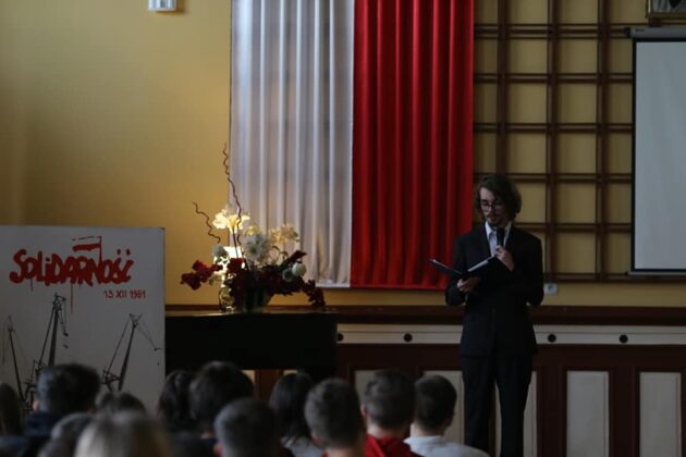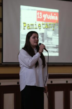 13 grudnia w auli I Liceum Ogólnokształcącego w Giżycku uczniowie upamiętnili 41 rocznicę wprowadzenia w Polsce stanu wojennego.