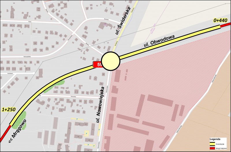 Inwestycja obejmuje budowę ronda na skrzyżowaniu drogi krajowej nr 59 z ulicą Świderską w Giżycku. W ramach zadania będzie wykonana: