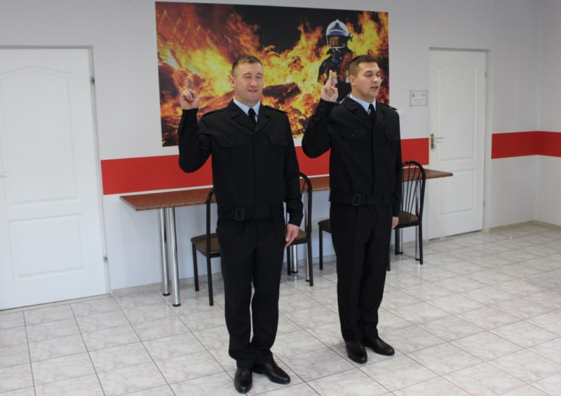Służbę w Jednostce Ratowniczo-Gaśniczej w Giżycku rozpoczęli Robert Rudziewicz i Paweł Szczerbowski. Ślubowanie przyjął Komendant Powiatowy PSP bryg.mgr Tomasz Siemieniuk.