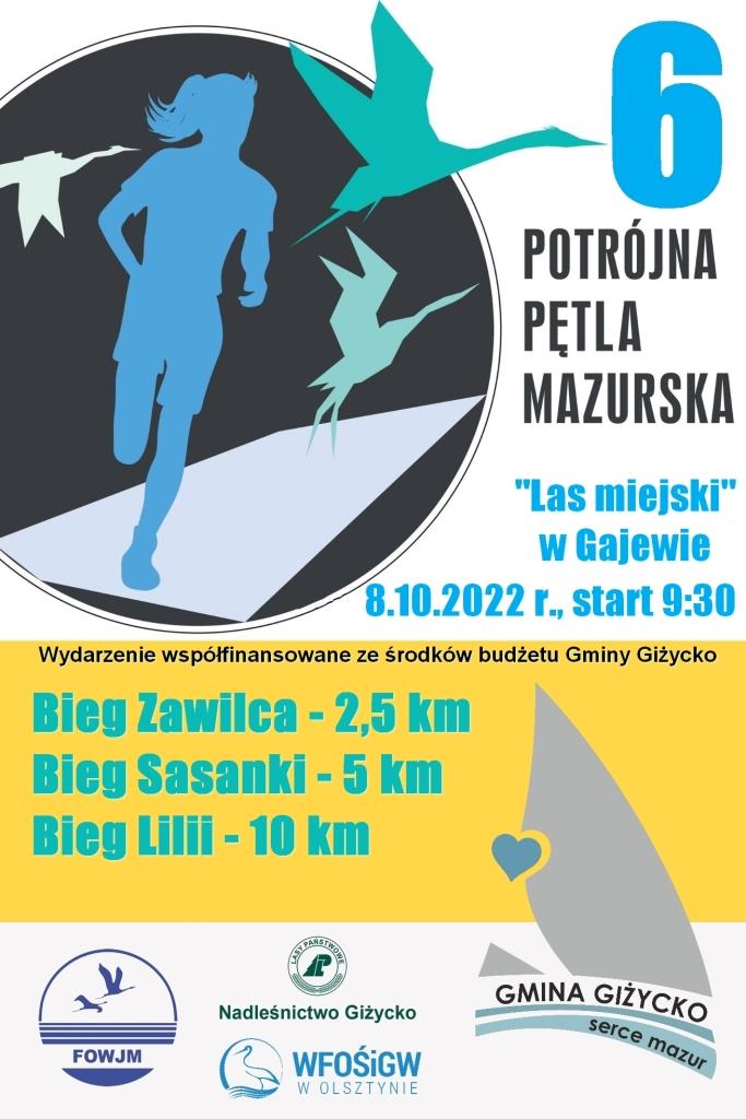 Fundacja Ochrony Wielkich Jezior Mazurskich i Wójt Gminy Giżycko zapraszają wszystkich miłośników biegania i nie tylko do spędzenia aktywnej soboty w Lesie Miejskim w Gajewie. Przyjdź i sprawdź się w „VI Potrójnej Pętli Mazurskiej”.