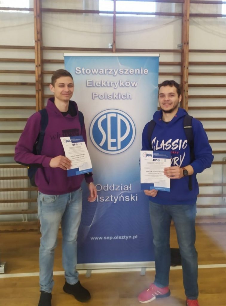 Bartosz i Michał stanęli w szranki z uczniami ze szkół o profilu elektrycznym z północno-wschodniej Polski i uzyskali miejsce w pierwszej dziesiątce. Z pewnością było to dla nich bardzo wartościowe doświadczenie. Opiekunem uczniów był Pan Andrzej Radziewicz.