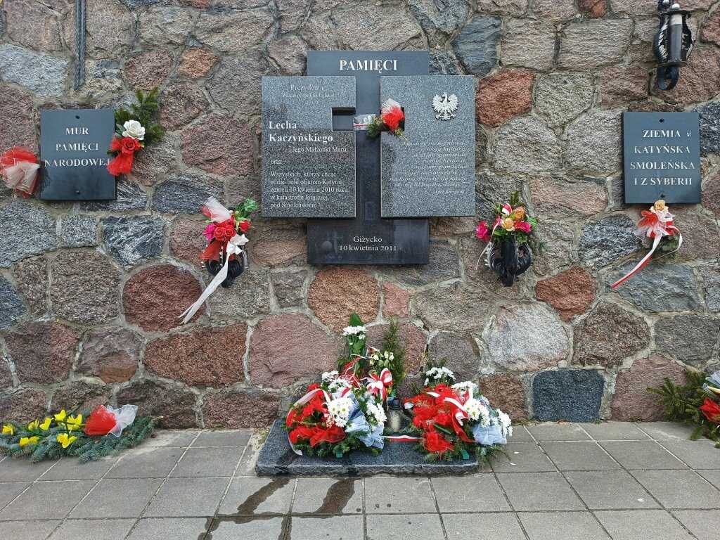 W Giżycku o godzinie 8:41 Starosta Giżycki Mirosław Dariusz Drzażdżewski, Wicestarosta Giżycki Mateusz Sieroński, Zastępca Burmistrza Giżycka Cezary Piórkowski oraz przedstawiciel Prawa i Sprawideliwości Leonard Zajączkowski złożyli wiązanki kwiatów pod tablicą upamiętniającą katastrofę pod Smoleńskiem przy Sanktuarium Św. Brunona w Giżycku.