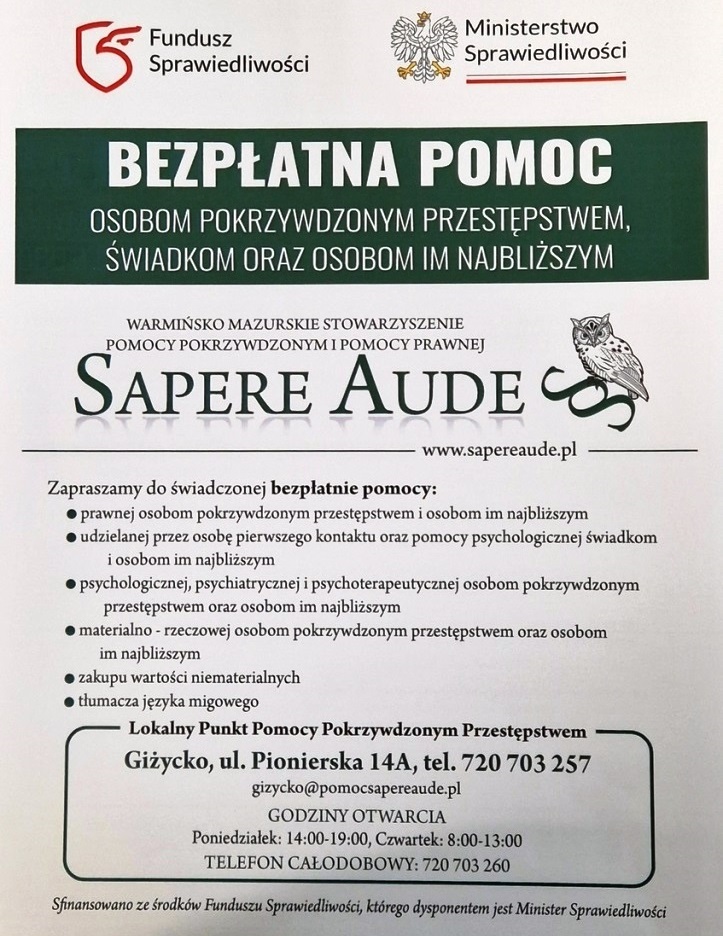 W Giżycku funkcjonuje Lokalny Punkt Pomocy Pokrzywdzonym Przestępstwem