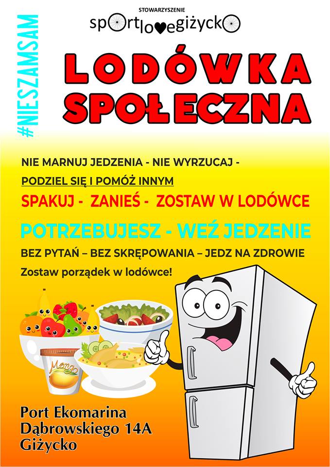 W porcie Ekomarina na ul. Dąbrowskiego 14 (obok umywalni – budynek MOPR/ baza od strony jeziora) stanęła pierwsza „Lodówka Społeczna”. Powstała z myślą o osobach potrzebujących. Każdy może do niej włożyć albo wziąć żywność.