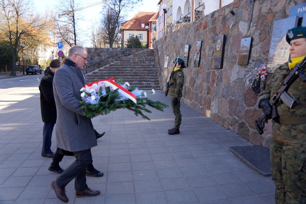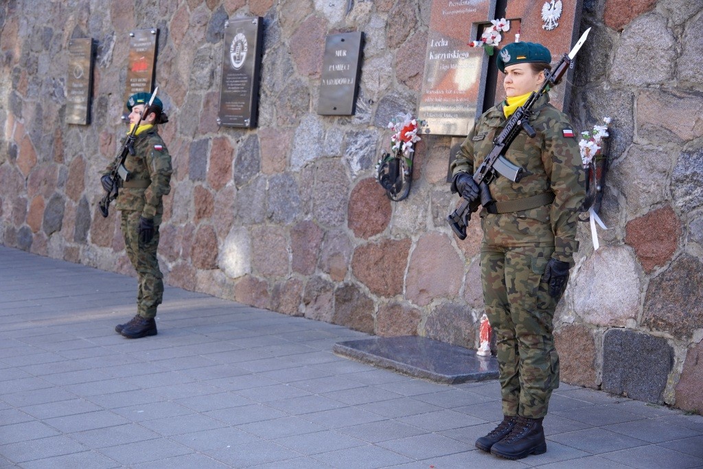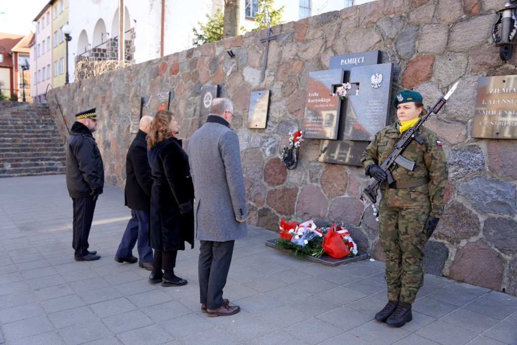 Burmistrz Giżycka Ewa Ostrowska, Starosta Powiatu Giżyckiego Mirosław Drzażdżewski, komendant Straży Miejskiej Maciej Ambroziak, wiceprezes Koła Światowego Związku Żołnierzy AK w Giżycku Andrzej Szocik oddali dziś o godzinie 8:41 hołd ofiarom katastrofy smoleńskiej, uczestnicząc w symbolicznych uroczystościach pod Murem Pamięci przy Sanktuarium św. Brunona.