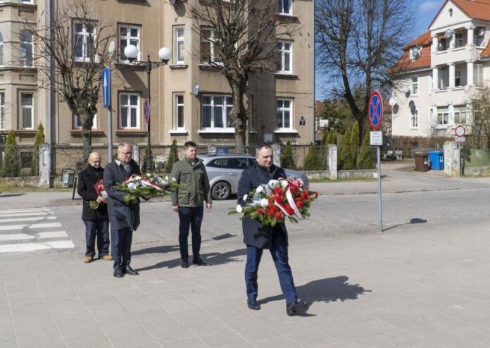We wtorek 11 kwietnia Burmistrz Giżycka Wojciech Karol Iwaszkiewicz, Starosta Powiatu Giżyckiego Mirosław Drzażdżewski oraz Wicestarosta Mateusz Sieroński i wiceprezes Koła Światowego Związku Żołnierzy AK w Giżycku Andrzej Szocik złożyli kwiaty pod Murem Pamięci przy Sanktuarium św. Brunona.