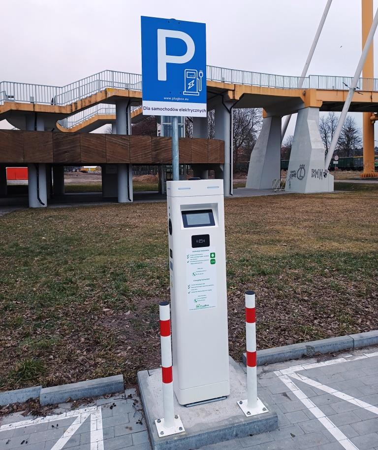 Urządzenie marki PlugBox może jednocześnie obsłużyć dwa samochody. Przy stacji zostały wydzielone specjalne koperty parkingowe dla aut elektrycznych. Ładowarka wyposażona jest w złącza typu: Mode2-AC-3p i Mode3-AC-3p, a maksymalna moc ładowania to 22 kW.