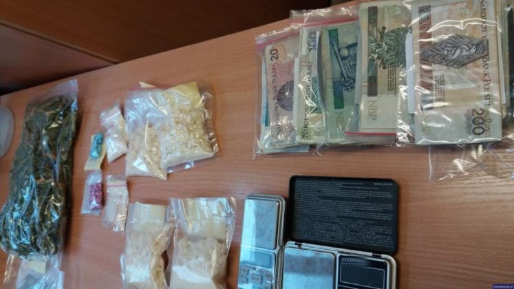 W mieszkaniu na olsztyńskim Zatorzu policjanci znaleźli około 1500 porcji metamfetaminy i amfetaminy, 200 porcji marihuany i ponad 50 tabletek ekstazy. Funkcjonariusze zabezpieczyli także ponad 18 tys. zł w gotówce, która pochodziła w większości ze sprzedaży narkotyków. Wartość rynkowa zabezpieczonych substancji wynosi ponad 30 tys. zł.