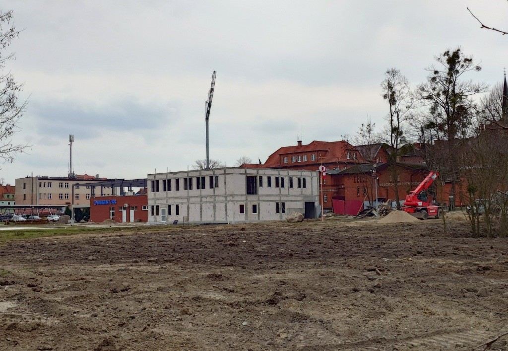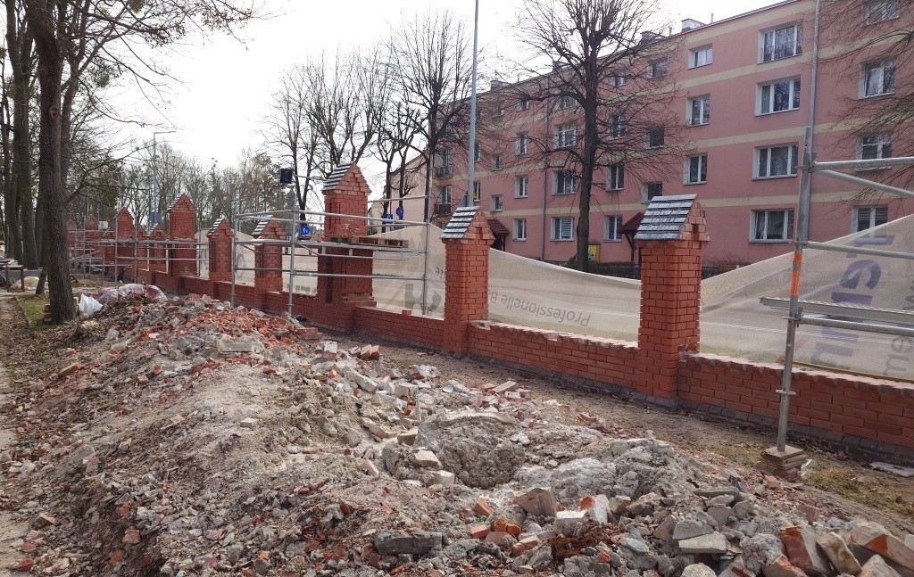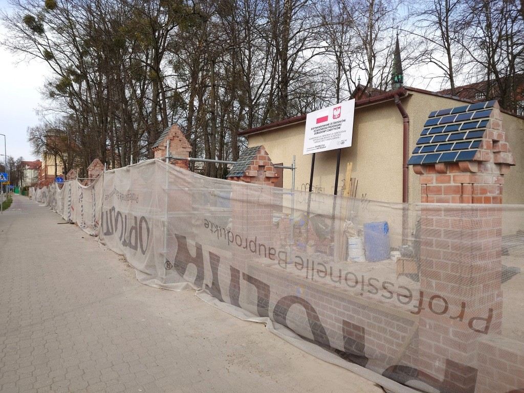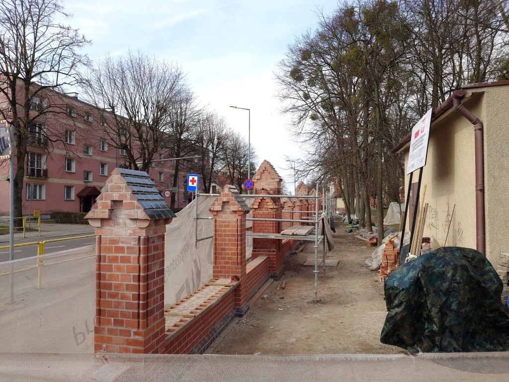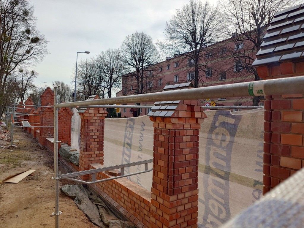 Trwają prace związane z nadbudową budynku SOR oraz renowacją ogrodzenia szpitala w Giżycku wzdłuż ulicy Warszawskiej.