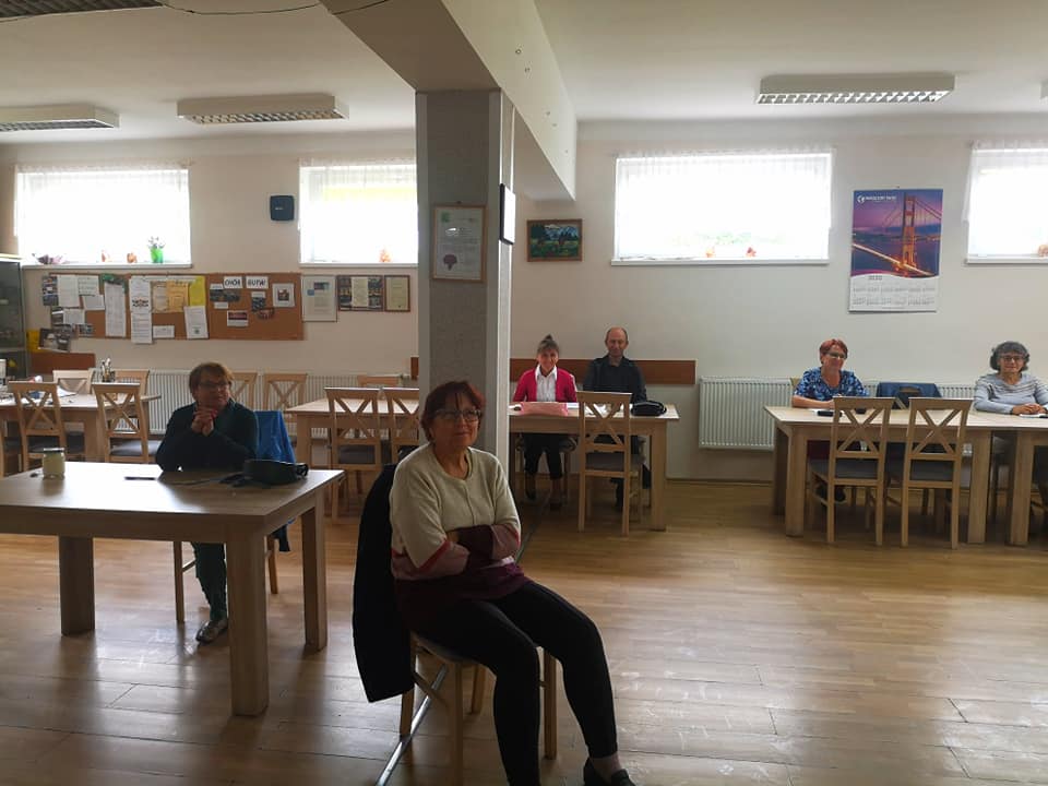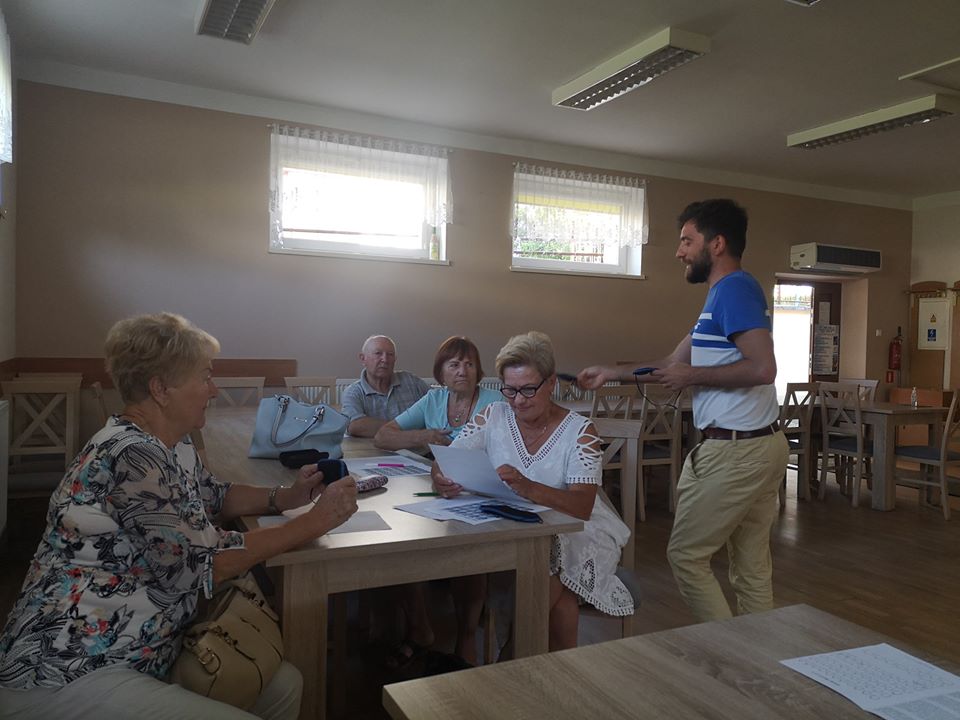 20 lipca w Klubie Seniora odbyło się spotkanie z Michałem Drzewek – pedagogiem, animatorem, socjologiem, nauczycielem, trenerem, coachem, działaczem społecznym, wieloletnim tłumaczem- przewodnikiem, instruktorem szkoleń, tłumaczem języka migowego, wolontariuszem w Towarzystwie Pomocy Głuchoniewidomym, nauczycielem Polskiego Języka Migowego. Warsztaty zatytułowane były „W ciszy i ciemności – świat osób głuchoniewidomych”. Uczestnicy uczyli się „migać” kilka podstawowych słów, zapoznali się z alfabetem palcowym, ale także i alfabetem Lorma (do komunikacji osób głucho-niewidomych), poznawali rzeczy i przyprawy po zapachu i kształcie, a na koniec nawet zaśpiewali piosenkę w języku migowym.
