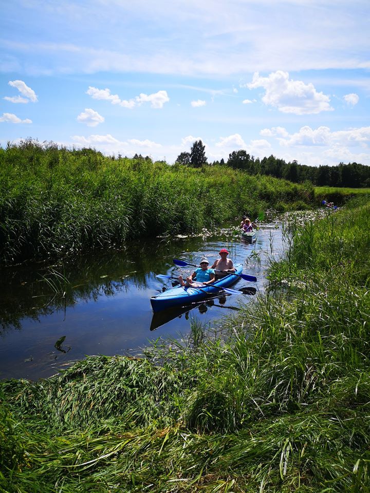 Kolejną atrakcję wodną stanowił spływ kajakowy rzeką Gołdapą, która okazała się bardzo malownicza, kręta i pełna bogatej roślinności. Niektórym nastręczyła więc sporo trudności, ale spalone kalorie zostały na mecie uzupełnione pysznymi kartaczami i siły szybko powróciły . Spływ odbył się 19 lipca, a już 16 sierpnia odbędzie się kolejny, tym razem Łaźną Strugą.