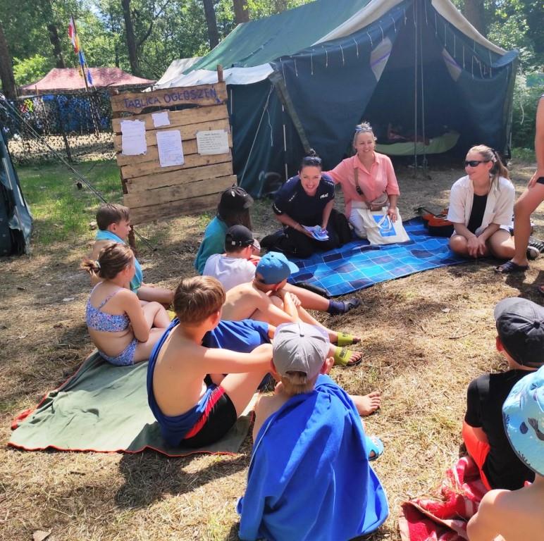 Przy okazji policjanci rozmawiają z dziećmi o bezpieczeństwie podczas wakacji, szkodliwości zażywania wyrobów tytoniowych, alkoholu i środków odurzających. Informują wypoczywające dzieci o konkursie filmowym „Filmowy przeWODNIK” realizowanym w ramach akcji „Kręci mnie bezpieczeństwo nad wodą” oraz edukują o bezpiecznych zachowaniach i zagrożeniach podczas wakacji.