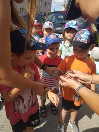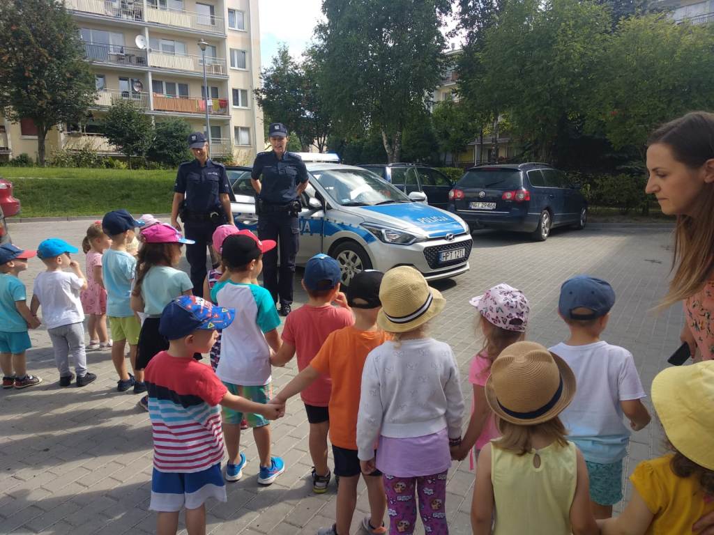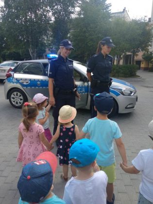 Głównym tematem spotkania z przedszkolakami było bezpieczeństwo na drodze. Dzieci dowiedziały się m.in. którą stroną jezdni należy się poruszać, gdy nie ma chodnika, a także w jakim miejscu należy przechodzić przez drogę oraz dlaczego warto nosić elementy odblaskowe.