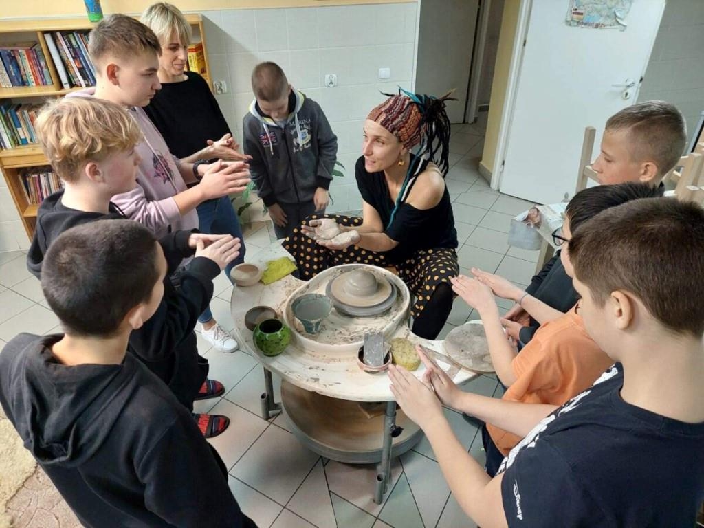 Wychowankowie poznali podstawowe techniki garncarskie, pozyskali wiedzę dotyczącą przygotowania gliny, suszenia naczyń, wypalania w piecu oraz zdobienia i szkliwienia.