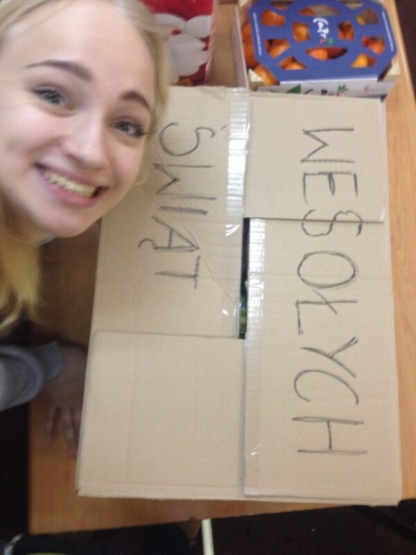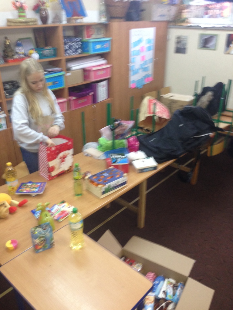 Przez cały tydzień mieliśmy wytypowaną rodzinę dla której przeznaczymy pomoc, jednak w ostatniej chwili po konsultacjach zmieniliśmy respondentów, którym pomogliśmy. W przeciągu tygodnia udało nam się nazbierać około 8-10 kg żywności, kilka artykułów chemicznych, książki dla dzieci oraz pluszaki. 22 grudnia 2015 r. spakowaliśmy to do kartonów i wraz z naszym wspaniałym opiekunem szkolnego koła wolontariatu <P. Pażyszek> zawieźliśmy paczki do rodziny. Po wniesieniu kartonów z prezentami, mama była w ogromnym szoku, że społeczność szkolna <jak to ujęła> „zechciała się zmobilizować i zrobić dobry uczynek przed świętami”. Na jej twarzy malowało się wiele emocji, których nie była w stanie powstrzymać. Wolontariusze, którzy pojechali z paczkami również byli pod wielkim wrażeniem. Pani Ania przed wejściem do rodziny mówiła, że będzie rozmawiać z matką, jednak po wejściu szok całkowicie pokrzyżował plany i ostatecznie zakończyło się na życzeniach świątecznych. W drodze powrotnej zdziwienie w dalszym ciągu „trzymało nasze słowa w swojej garści”. Byliśmy tak rozemocjonowani po tej kilkuminutowej wizycie, że przez połowę drogi powrotnej nie rozmawialiśmy prawie ze sobą.