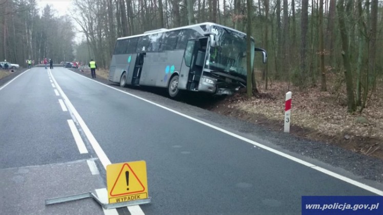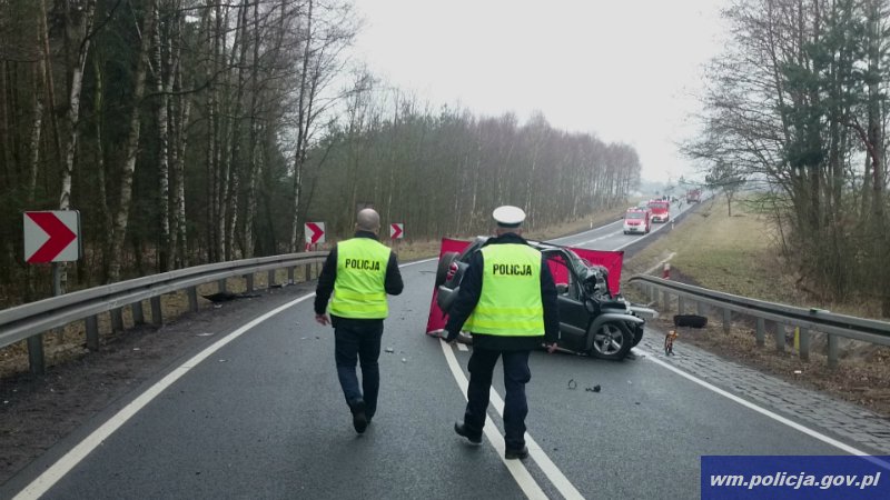 W sobotę oficer dyżurny iławskiej policji otrzymał informację o wypadku drogowym na drodze krajowej nr 16 w okolicach miejscowości Stanowo. Funkcjonariusze natychmiast pojechali na miejsce gdzie zastali rozbity samochód osobowy oraz autobus. Policjanci wyciągnęli z samochodu rannego mężczyznę. 58-letni mieszkaniec Ostródy pomimo podjętej reanimacji zmarł. Ze wstępnych ustaleń funkcjonariuszy wynika, że kierujący samochodem osobowym toyota z niewyjaśnionych przyczyn na łuku drogi zjechał na przeciwległy pas ruchu i doprowadził do czołowego zderzenia z autobusem. W wyniku poniesionych obrażeń kierujący samochodem osobowym zmarł. Natomiast z 30 podróżujących autobusem rejsowym, 2 osoby zostały ranne i przetransportowane do szpitala. Na miejscu tego tragicznego w skutkach wypadku pod nadzorem prokuratora pracowali policjanci ruchu drogowego wspólnie z technikiem kryminalistyki, który zabezpieczył ślady oraz wykonał dokumentację fotograficzną. Pozwoli to na dokładne ustalenie okoliczności tego tragicznego w skutkach zdarzenia.